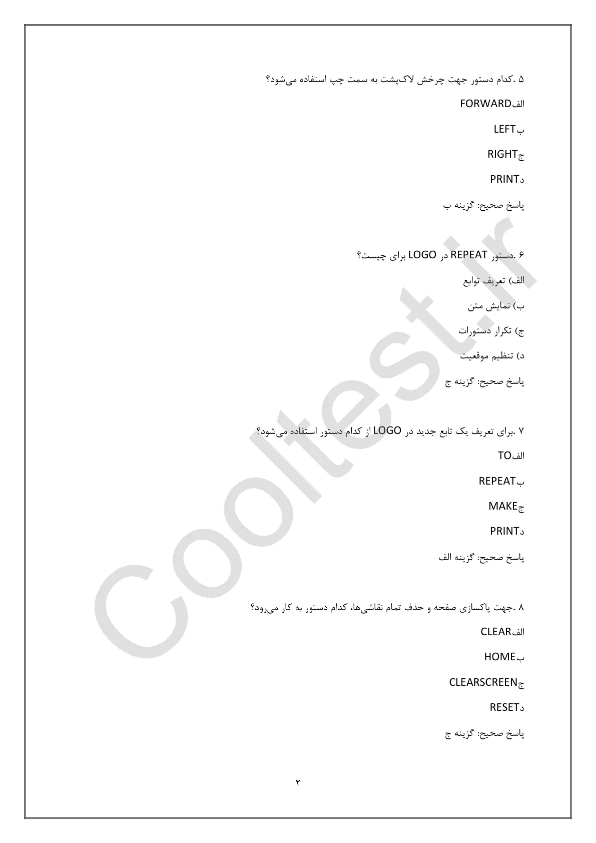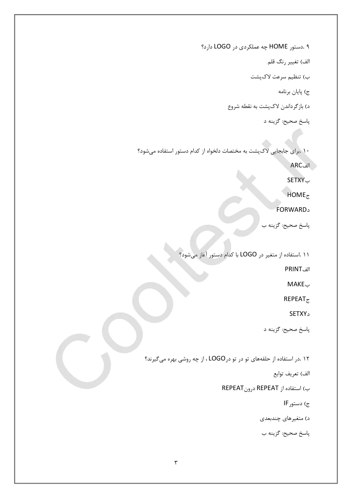 دستورات منطقی پایه، هسته اصلی برنامهنویسی LOGO هستند. این بخش شامل سوالاتی درباره: