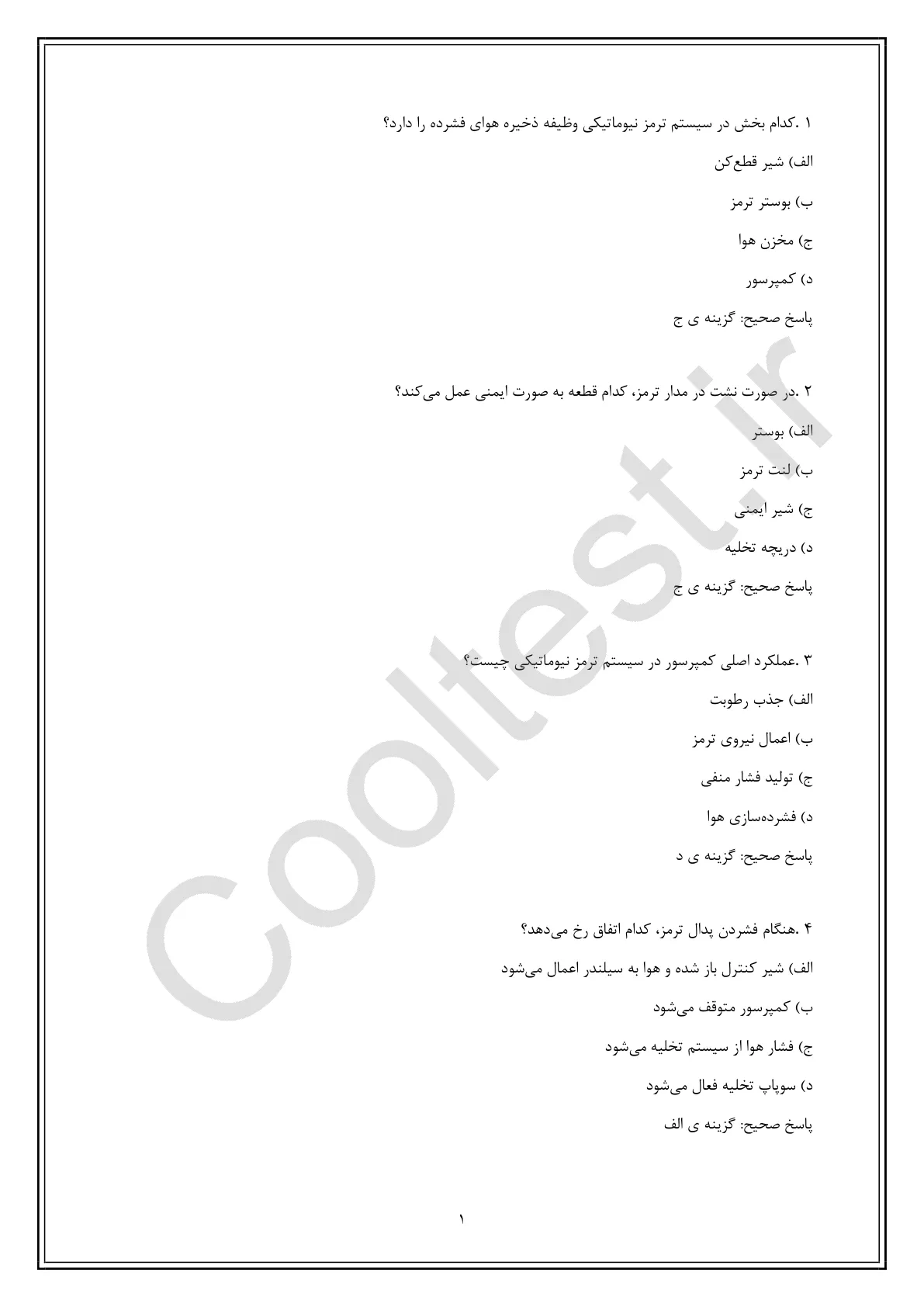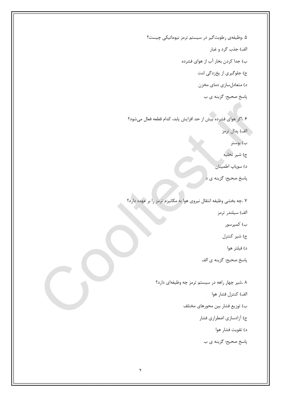 | اصول عملکرد ترمزهای نیوماتیکی | سوالاتی درباره نحوه کارکرد سیستمهای نیوماتیکی و اجزای اصلی. |