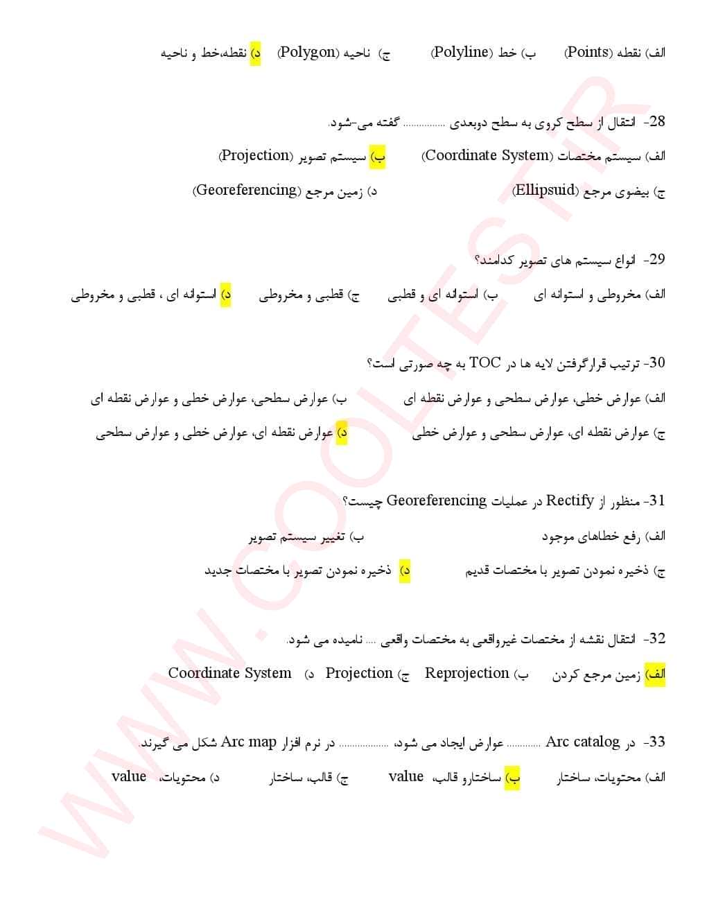 مجموعه سوالات و جزوه تخصصی سنجش از دور با پاسخنامه: در این بخش سوالاتی درباره تکنیک‌ها و کاربردهای سنجش از دور، سیستم‌های اطلاعات جغرافیایی (GIS) و تحلیل تصاویر ماهواره‌ای ارائه شده است.
