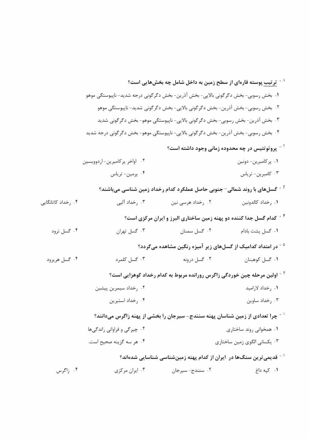 مجموعه جزوه و سوالات تخصصی زمین شناسی ایران با پاسخنامه