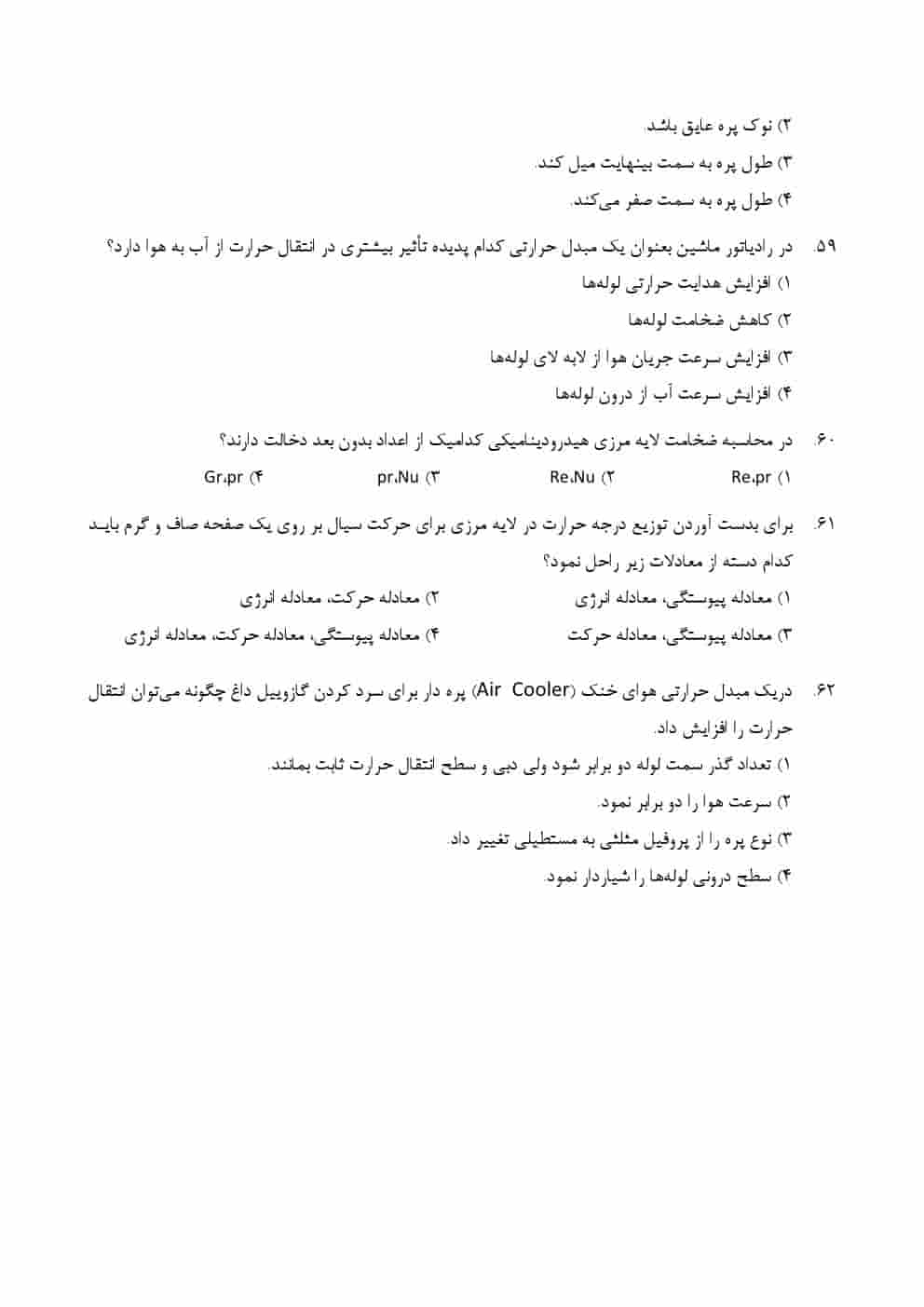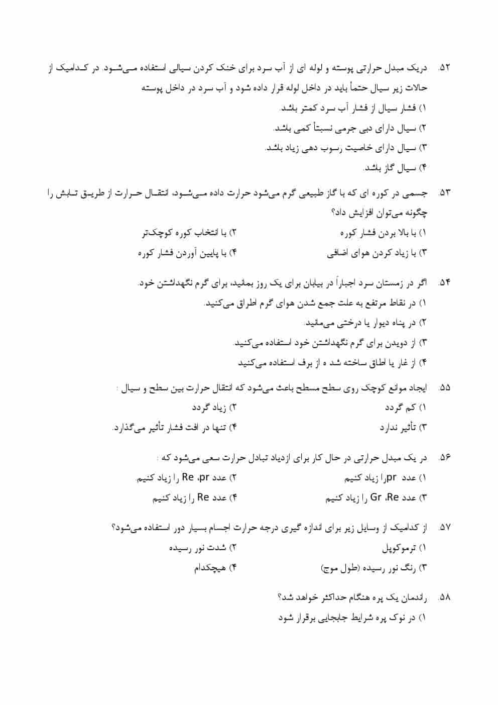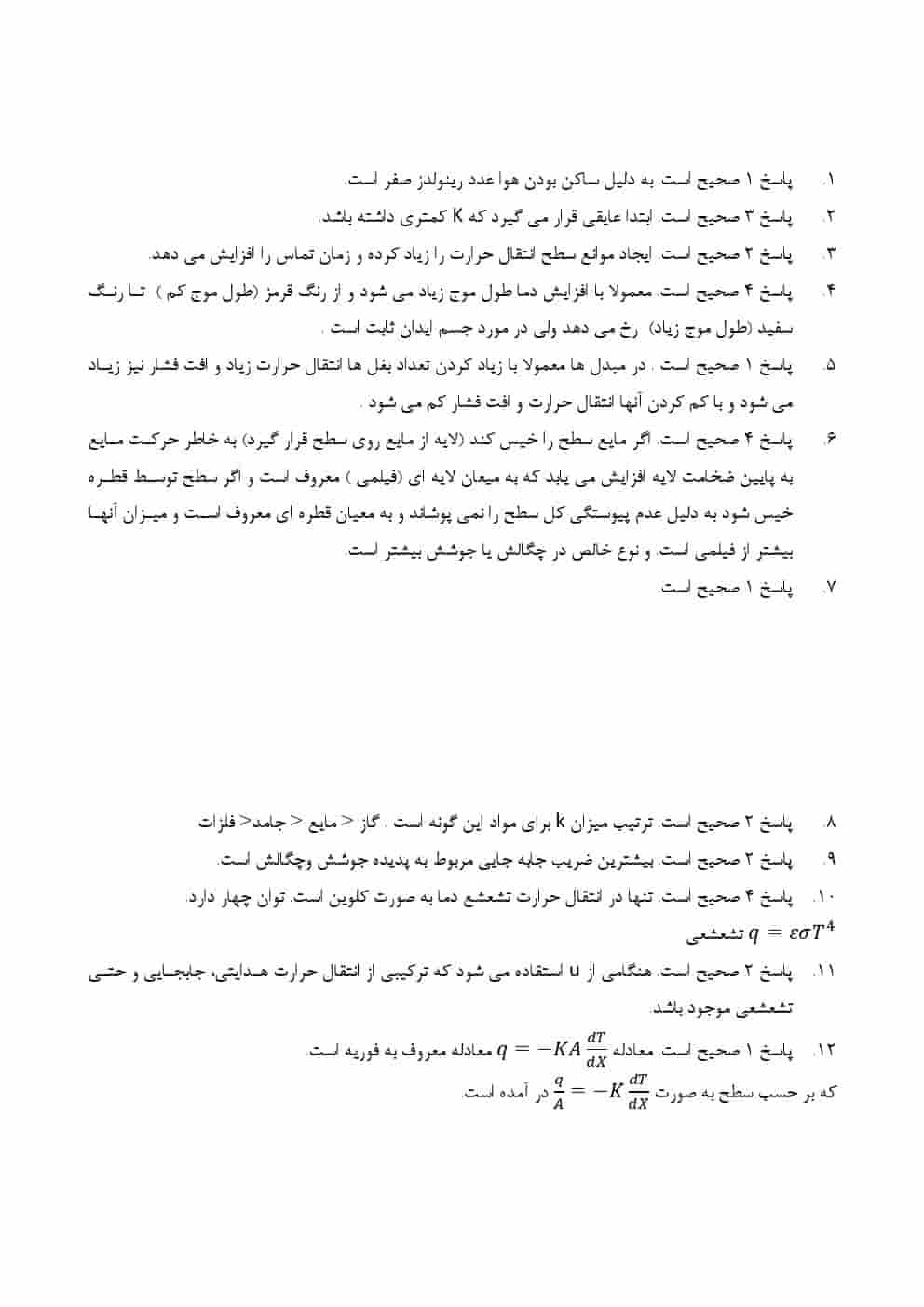 مجموعه سوالات تخصصی حرارت و ترمودینامیک با پاسخنامه