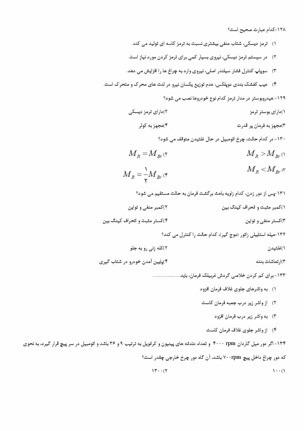 مجموعه سوالات تخصصی برق خودرو با پاسخنامه