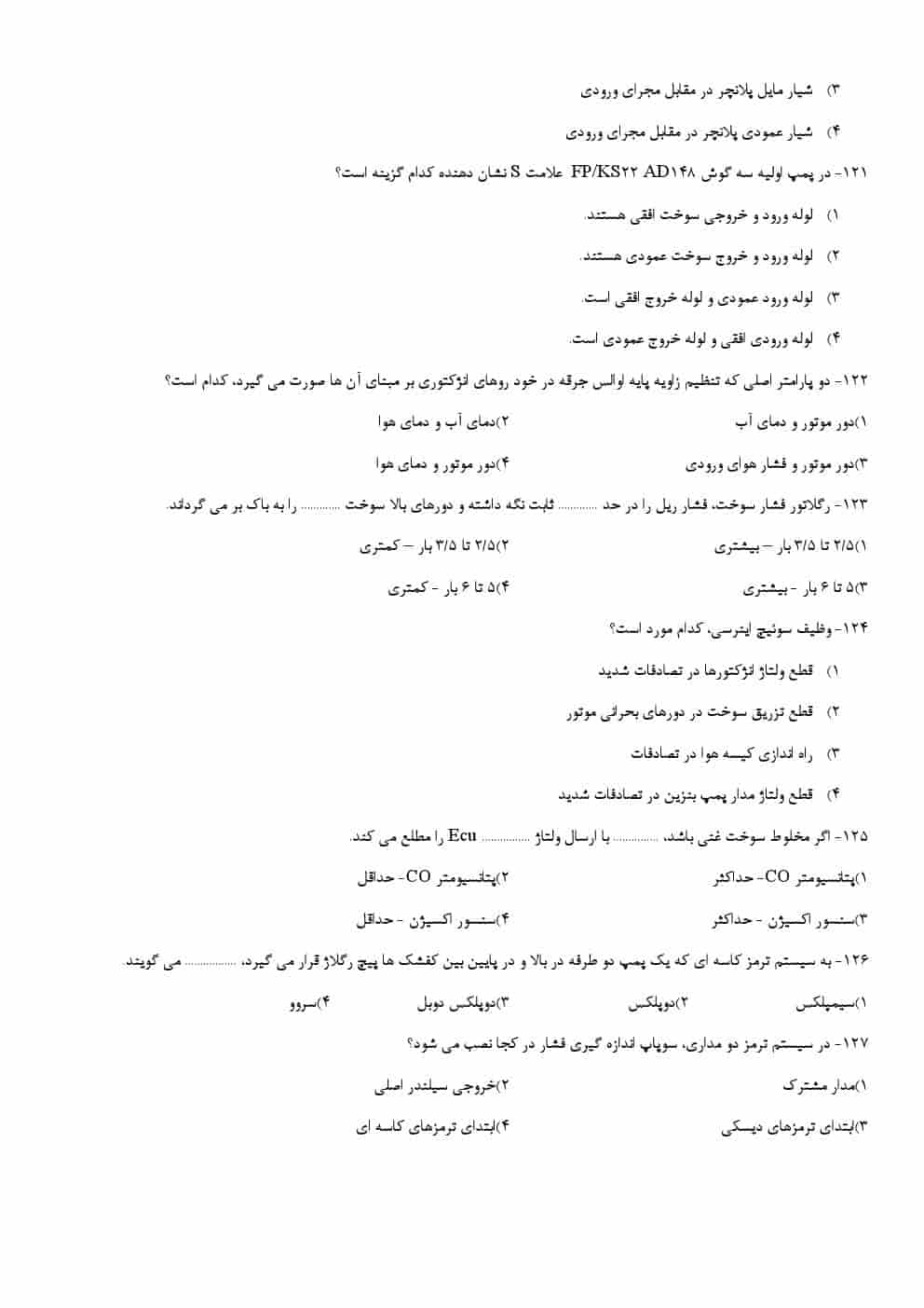 مجموعه سوالات تخصصی سیستم سوخترسانی با پاسخنامه