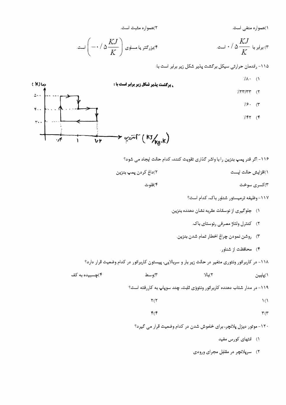 این بخش از سوالات به بررسی مباحث ترمودینامیک، شامل قوانین ترمودینامیک، سیکلهای حرارتی، و انتقال حرارت میپردازد.