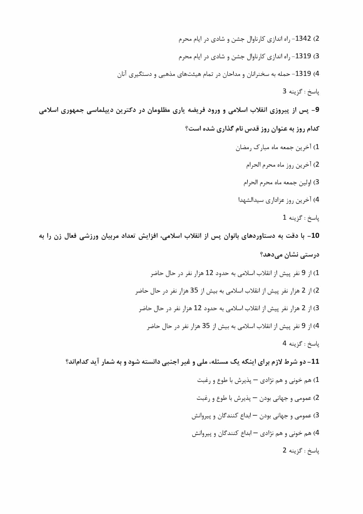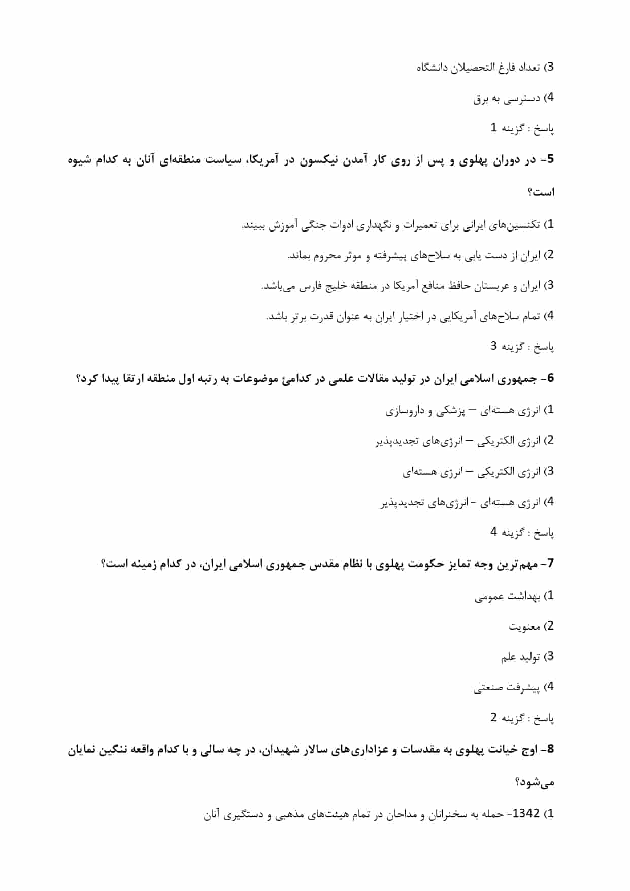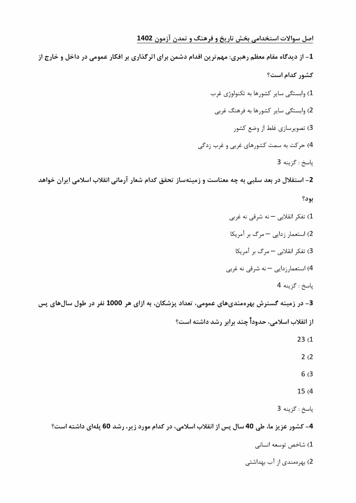 | سوالات بخش تاریخ و فرهنگ تمدن (اصل سوالات) | سوالات اصلی تاریخ و فرهنگ تمدن به همراه پاسخنامه کامل |