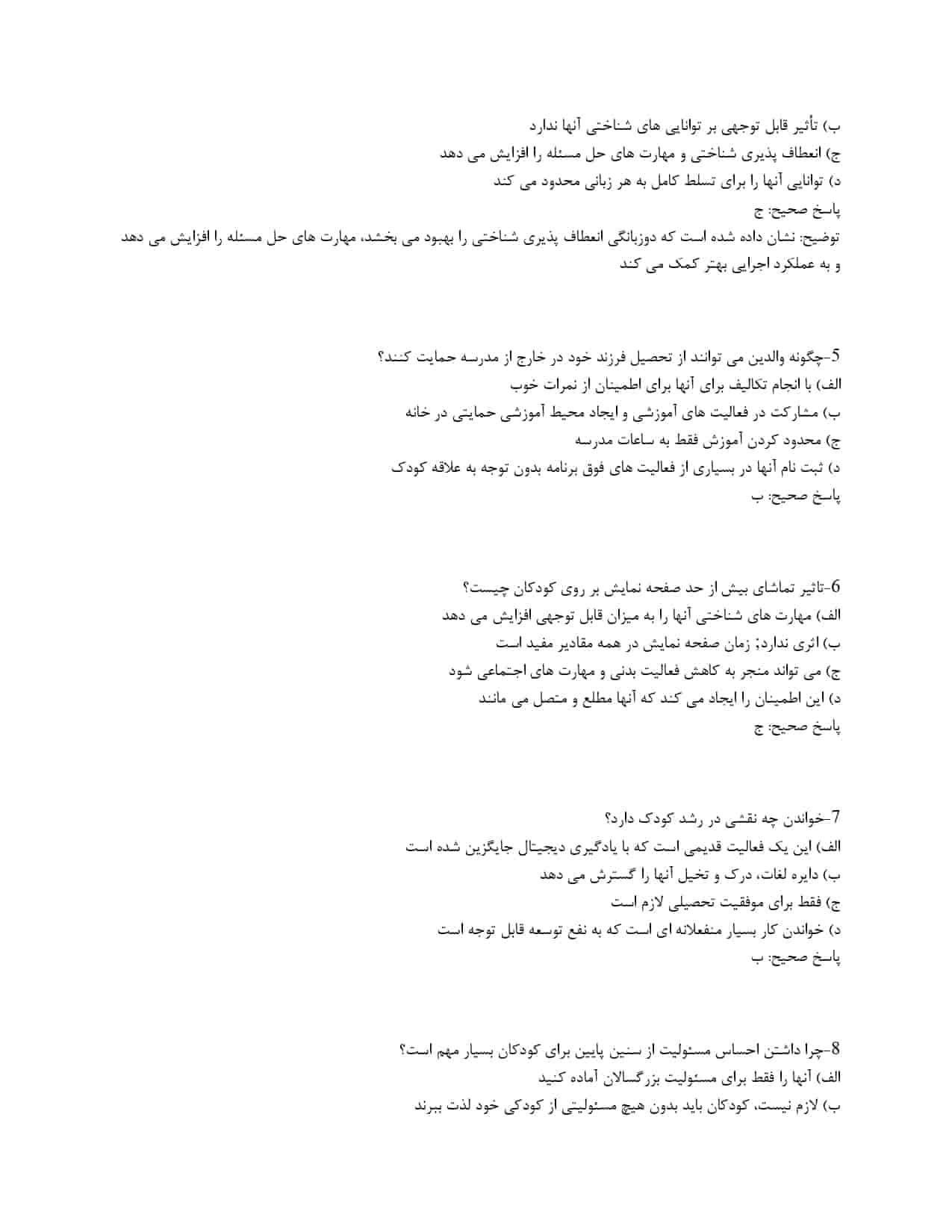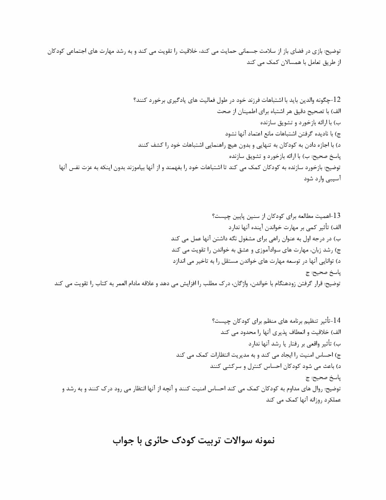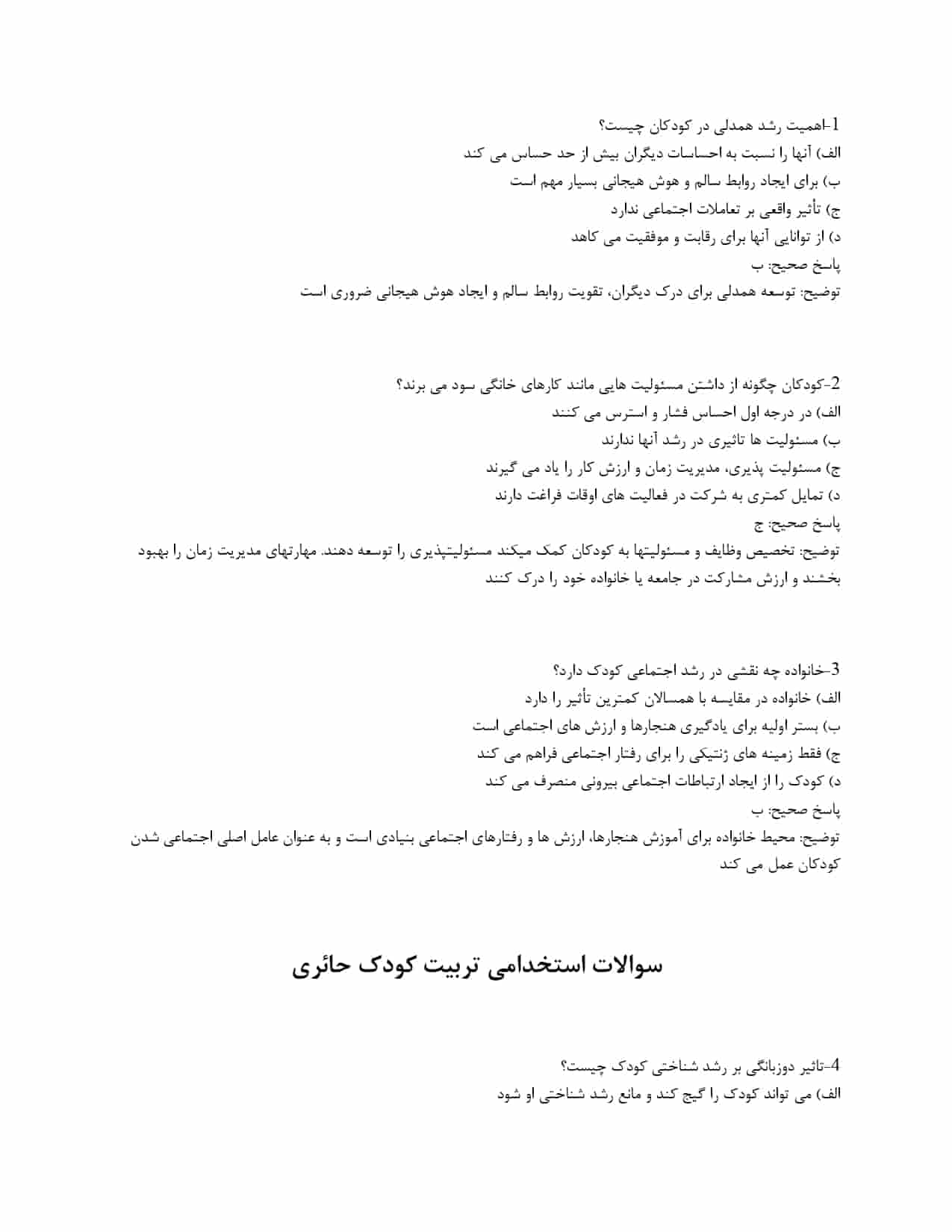 | سوالات تخصصی و عمومی | سوالات تخصصی و عمومی مرتبط با حوزه تربیت کودک |