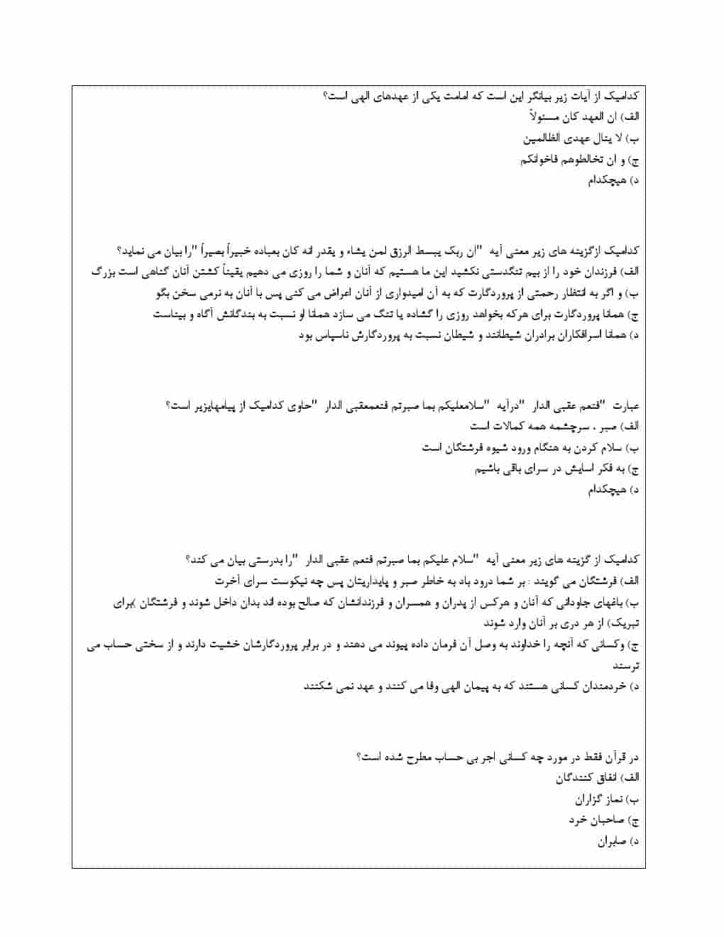 فهرست مطالب بسته سوالات تفسیر قرآن کریم: