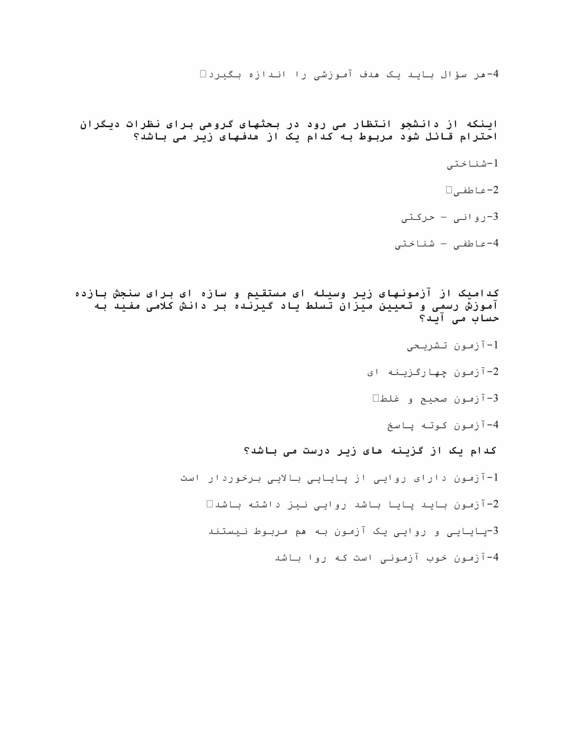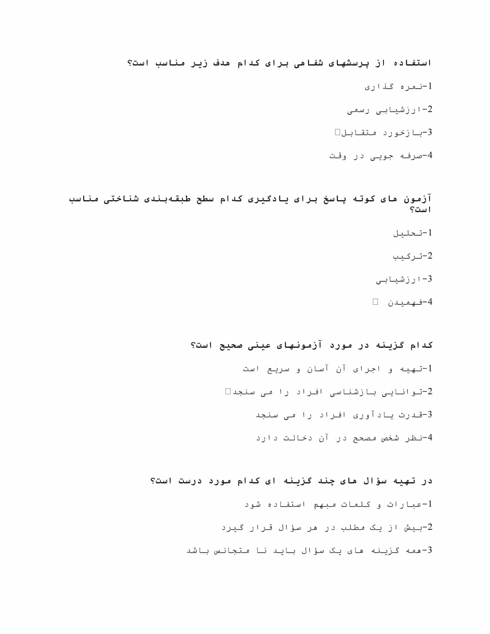 | فصل ۵: کاربردهای سنجش در آموزش | سوالاتی که به بررسی کاربردهای مختلف سنجش در حوزه آموزش میپردازند. |