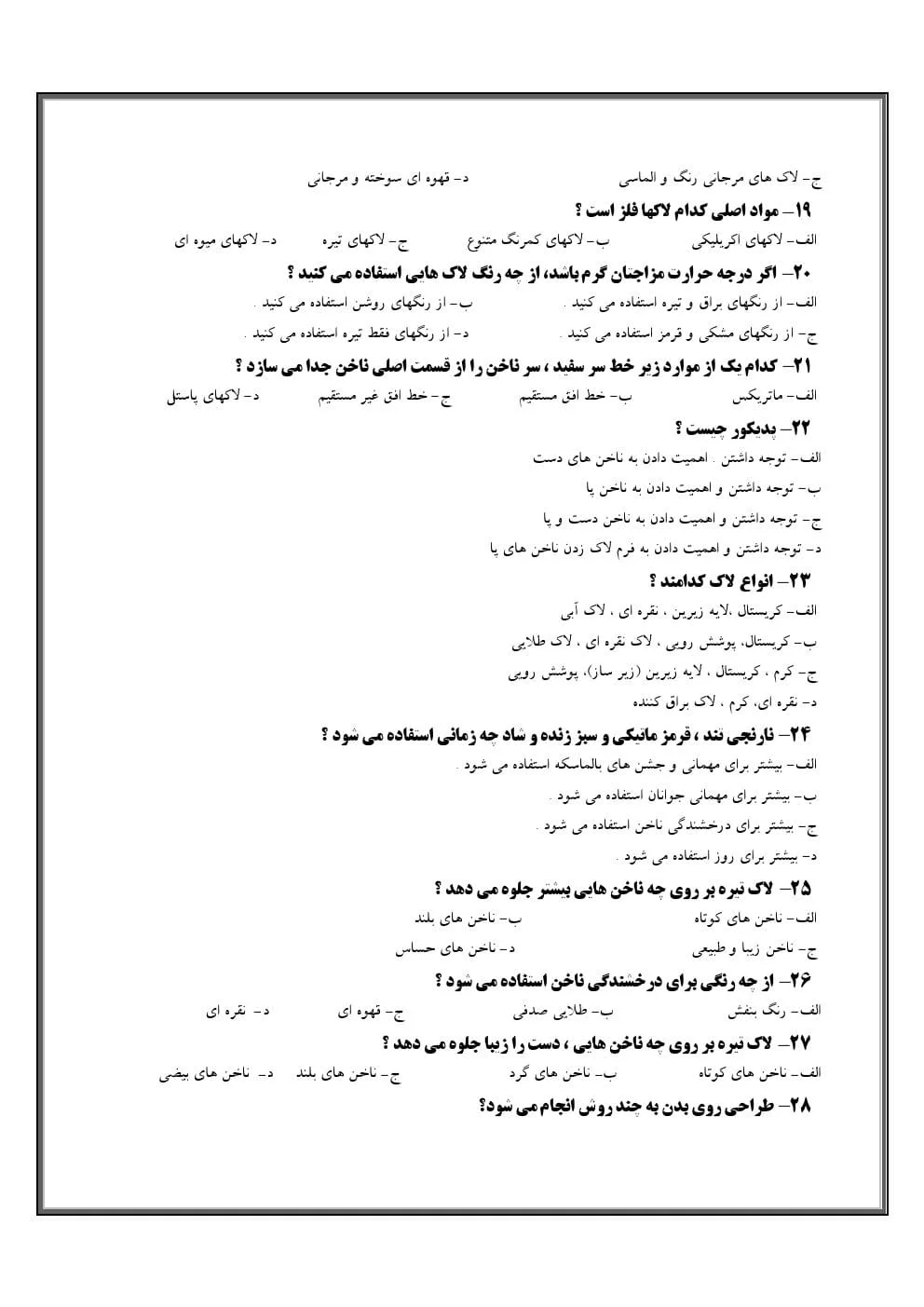 فصل ۴: مواد و محصولات آرایشی سوالات مربوط به مواد و محصولات مورد استفاده در آرایشگری ناخن