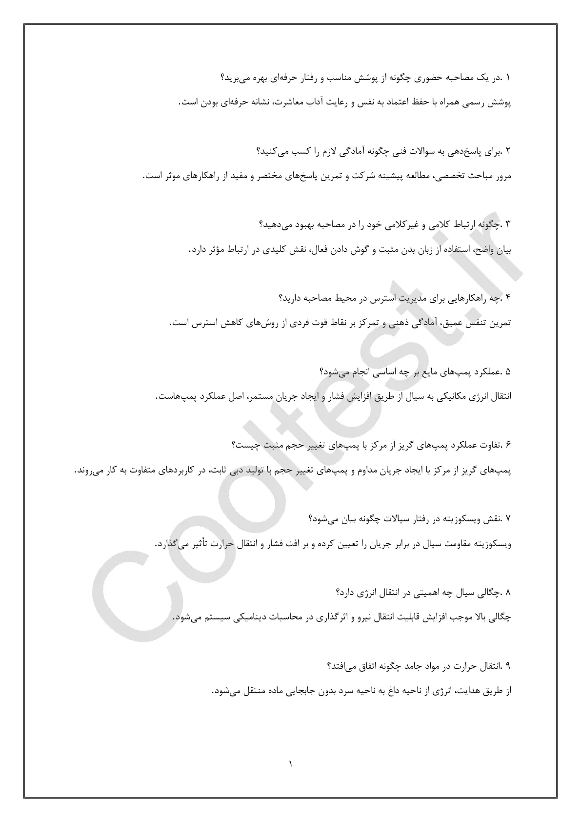 جزوه مصاحبه شرکت گاز بصورت پی دی اف