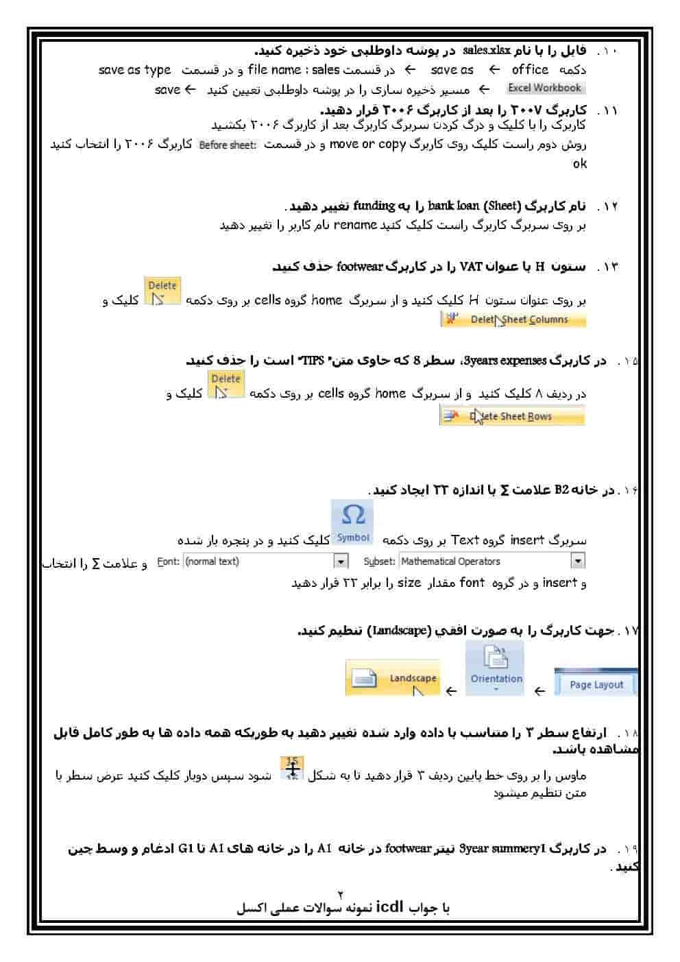 • مطالب کاربردی: سوالات بر اساس مباحث کلیدی و مهم اکسل تنظیم شده‌اند.