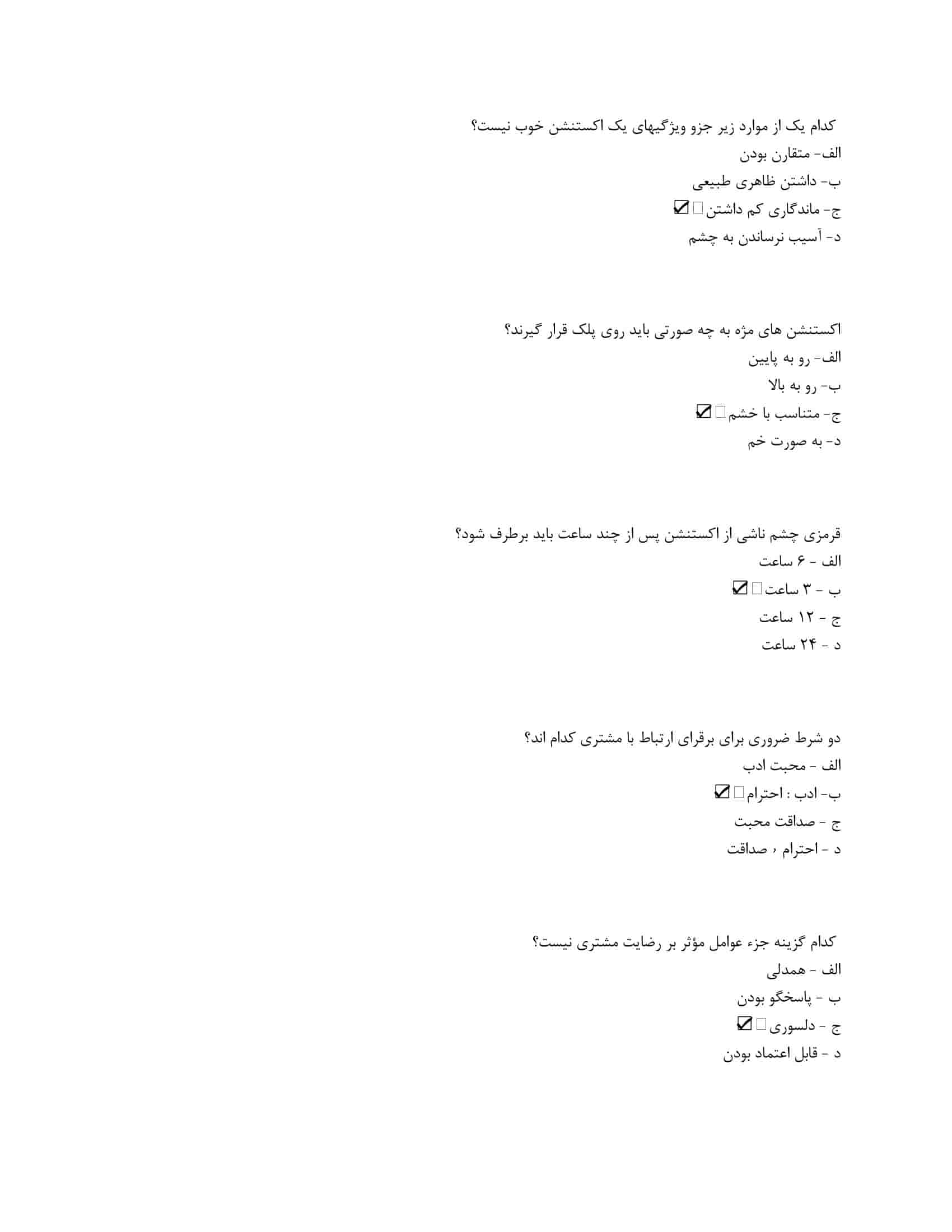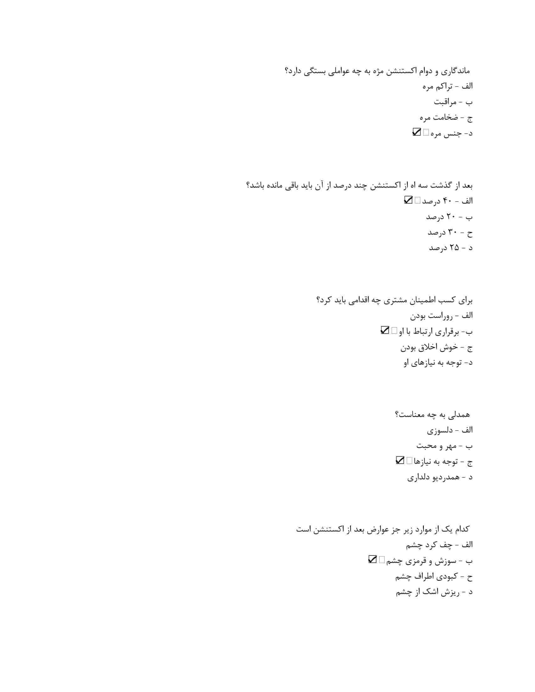 | فصل ۱: اصول و مبانی اکستنشن مژه | سوالات مربوط به اصول و مبانی اکستنشن و لیفت مژه |