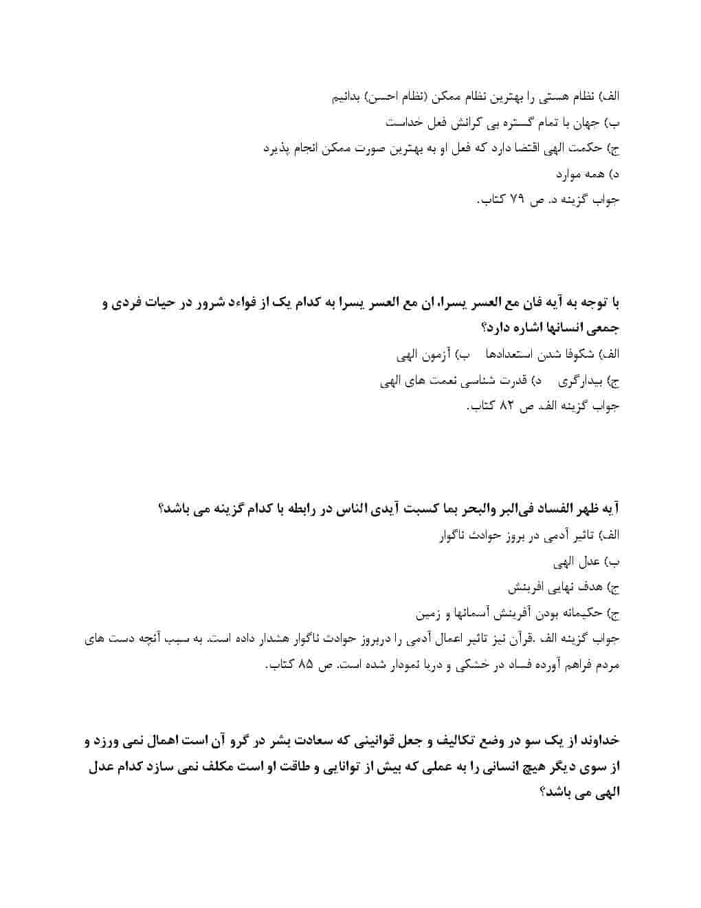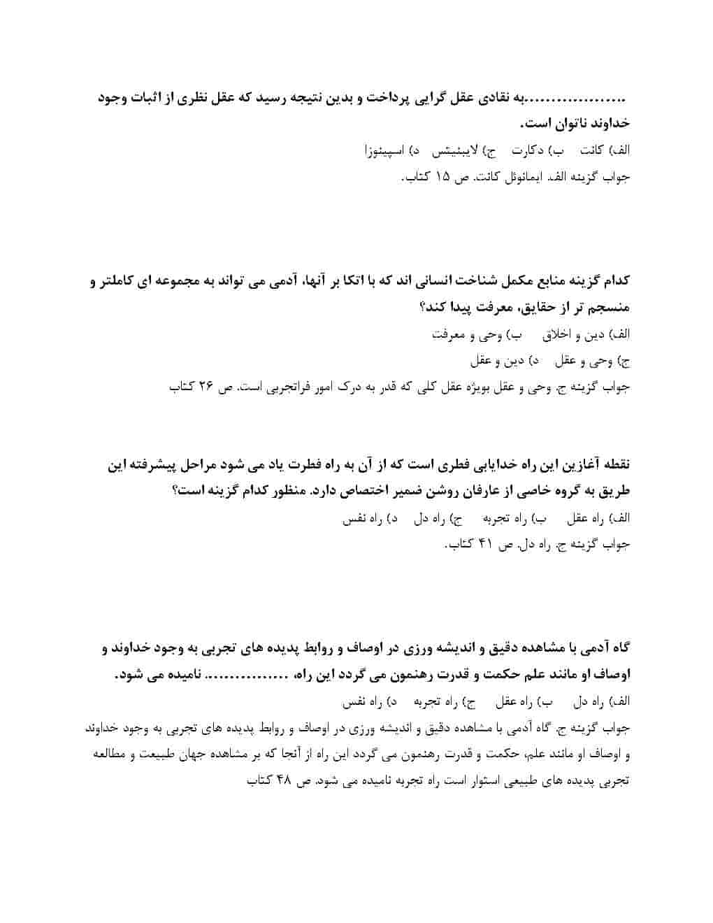 (بزرگترین مجموعه سوالات معارف اسلامی ۱ در اینترنت)
