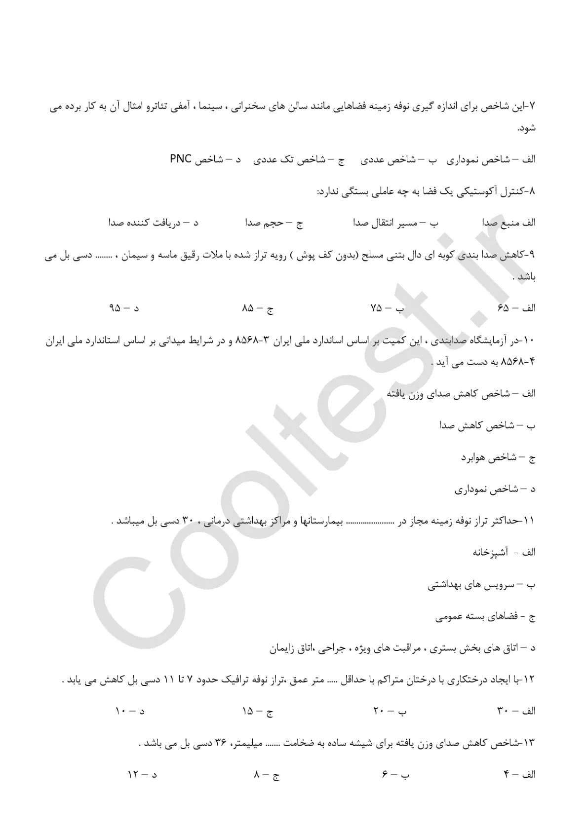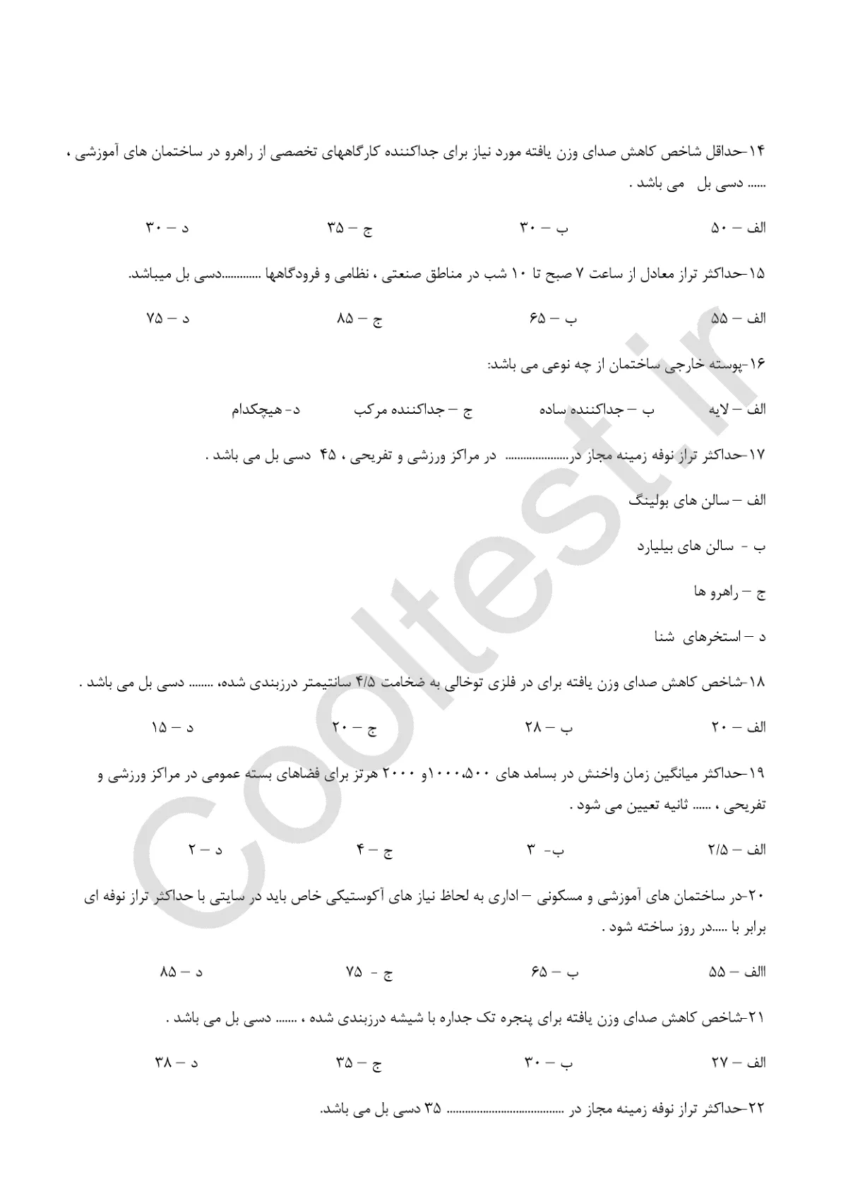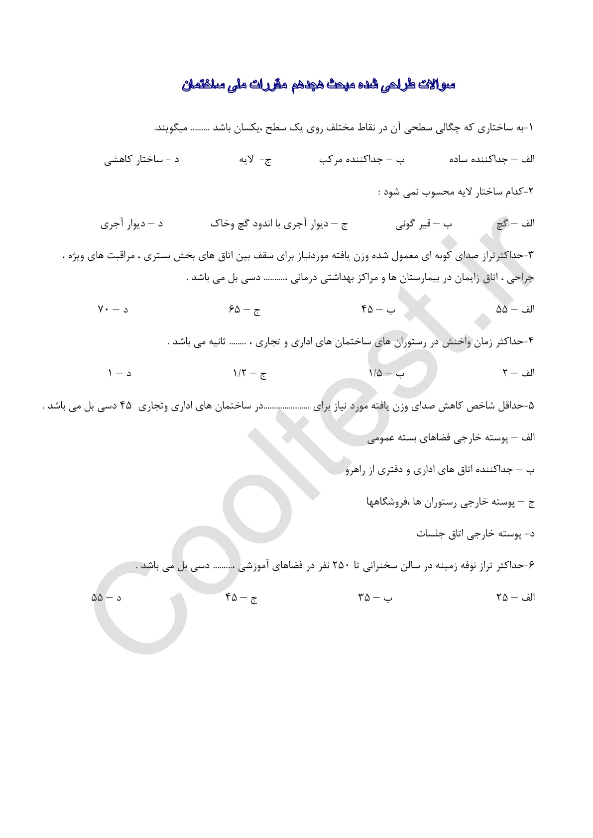 نمونه سوالات مقررات ملی ساختمان مبحث 18
