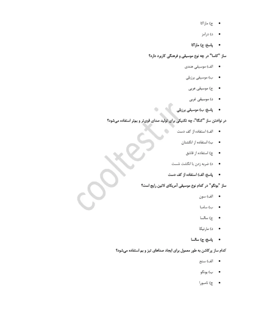 • آمادگی کامل برای آزمون‌ها: با داشتن سوالات جامع، شما می‌توانید به بهترین نحو برای آزمون‌های نوازندگی ساز کوبه ای پرکاشن آماده شوید.