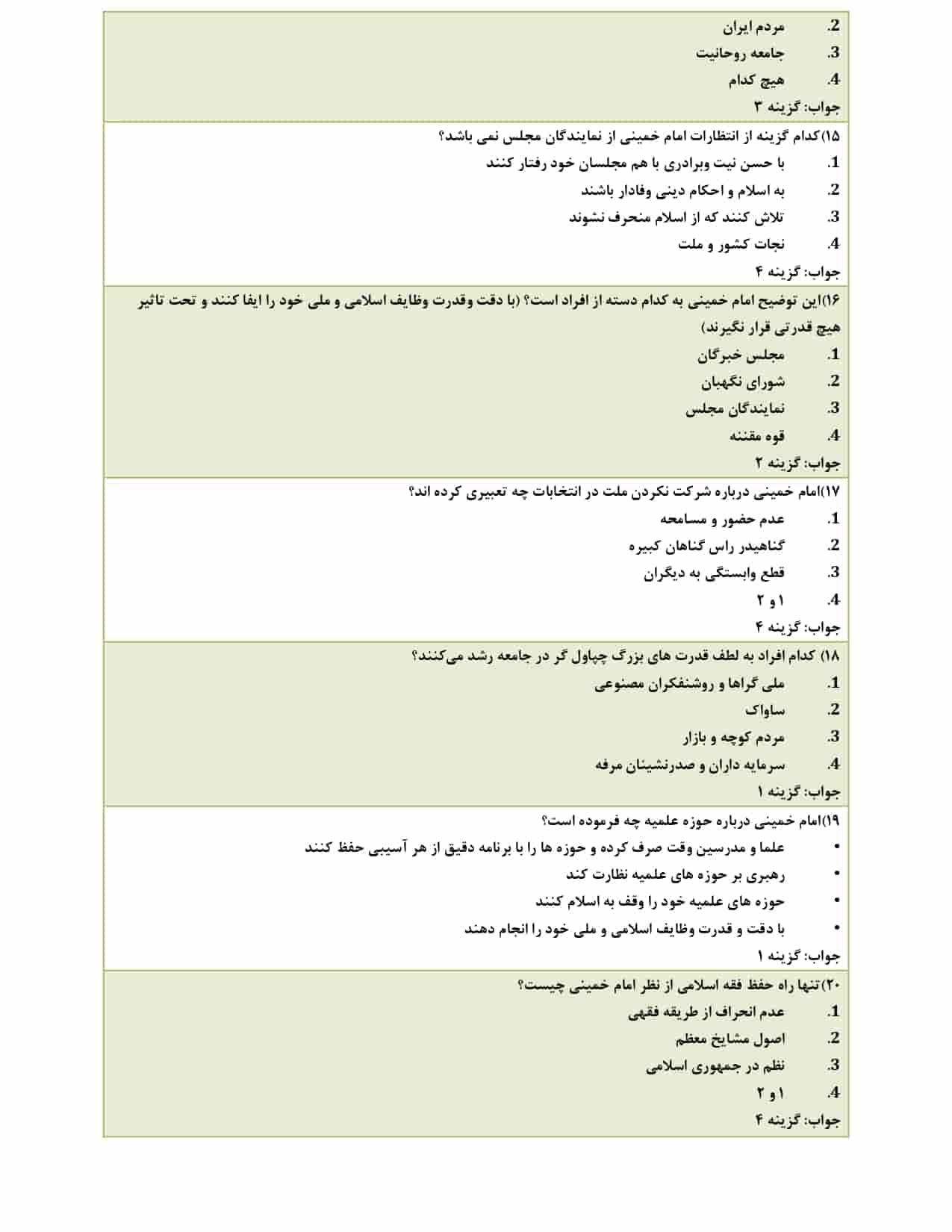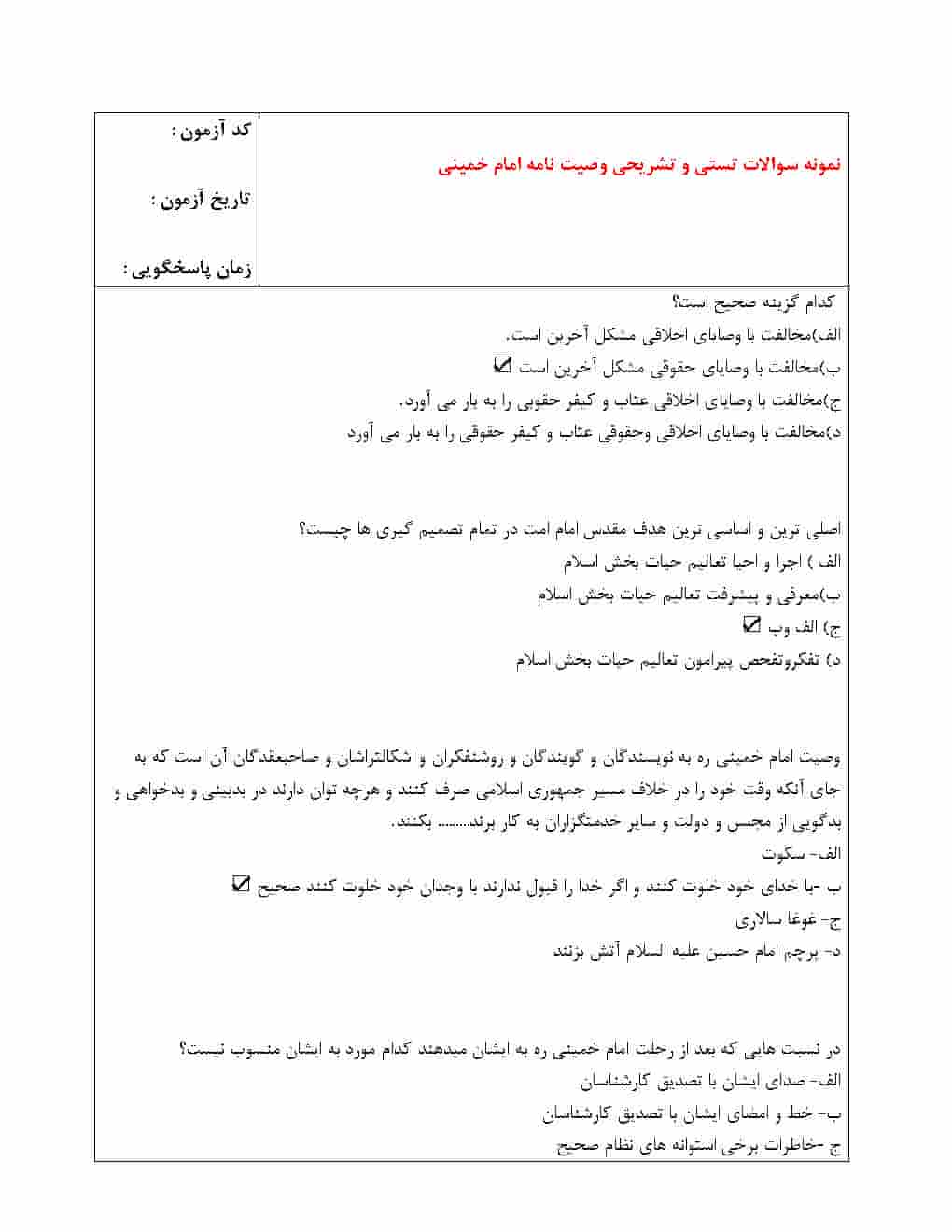 | بیش از ۶۳۰ سوال تستی وصیت نامه امام خمینی با جواب | سوالات پرتکرار همراه با پاسخهای دقیق و کامل |