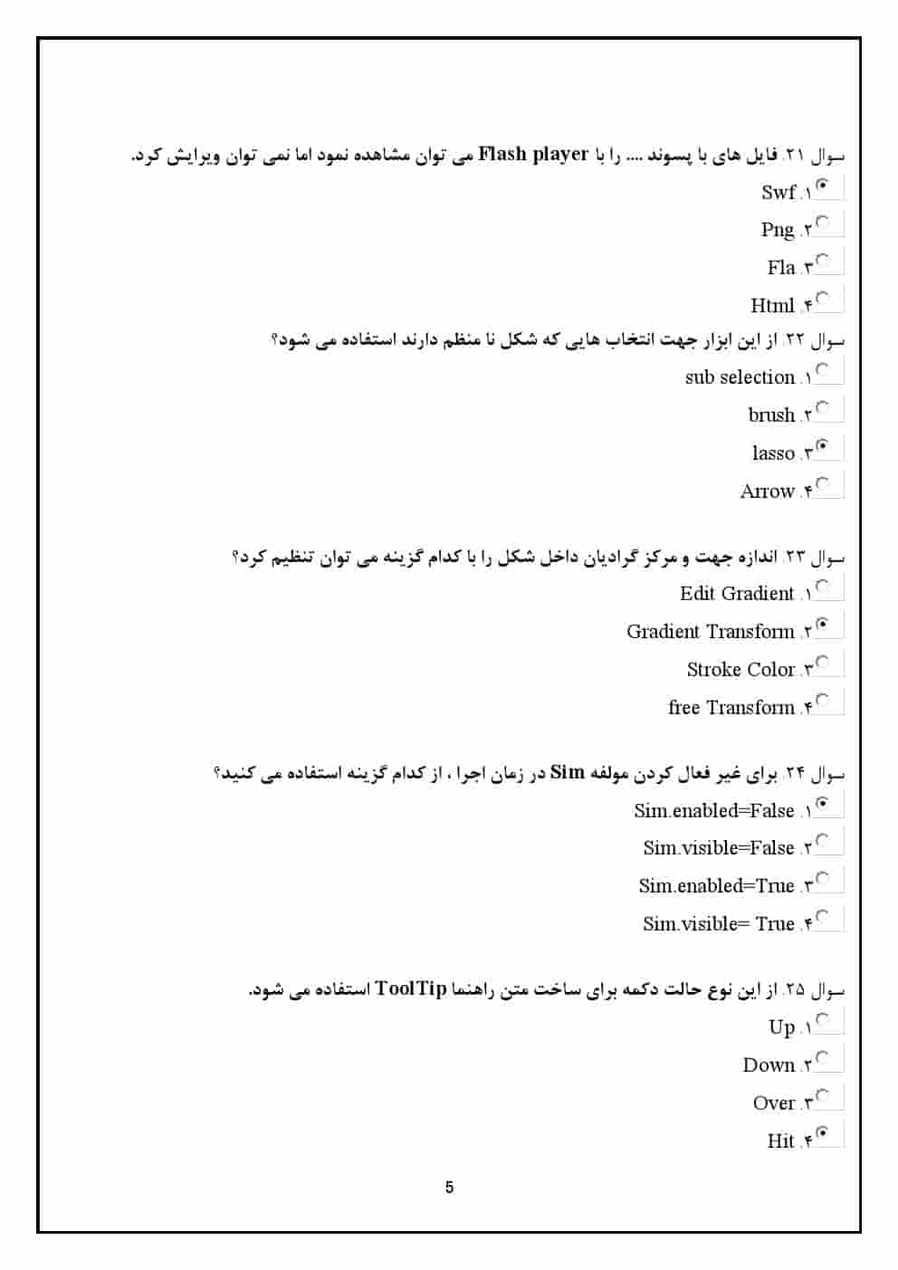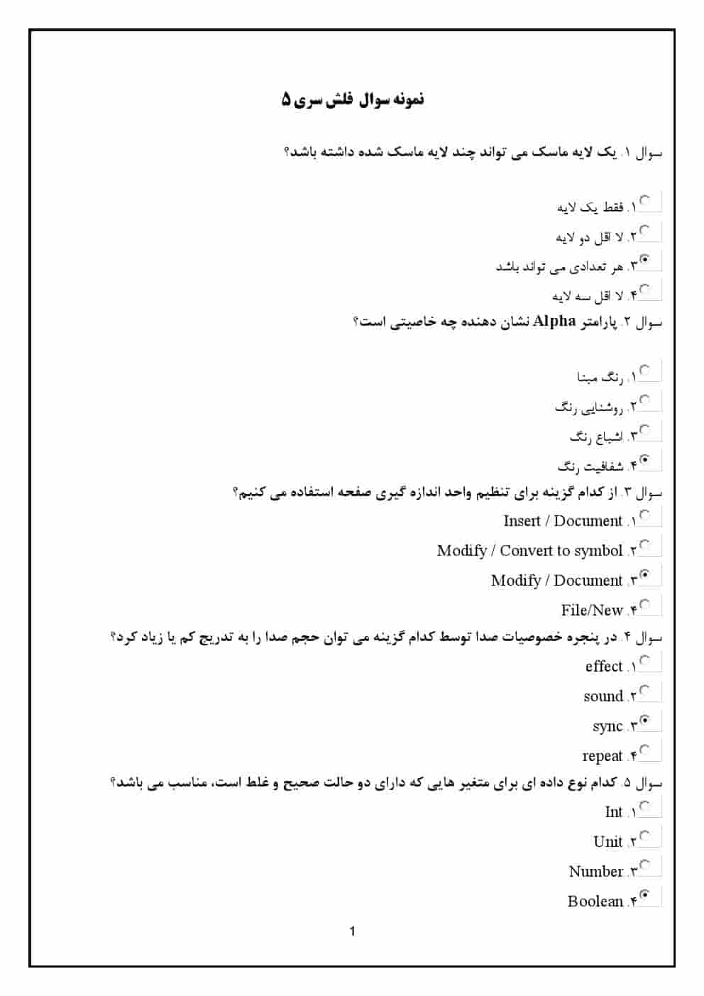 | فصل 1: معرفی نرمافزار Flash MX | سوالاتی که به بررسی ویژگیها و کاربردهای نرمافزار Flash MX میپردازند. |