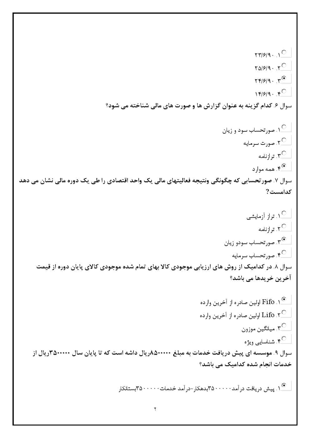 | فصل ۲: دفاتر حسابداری | سوالاتی در مورد انواع دفاتر حسابداری مانند دفتر روزنامه، دفتر کل و دفتر معین |