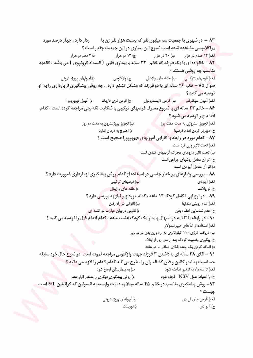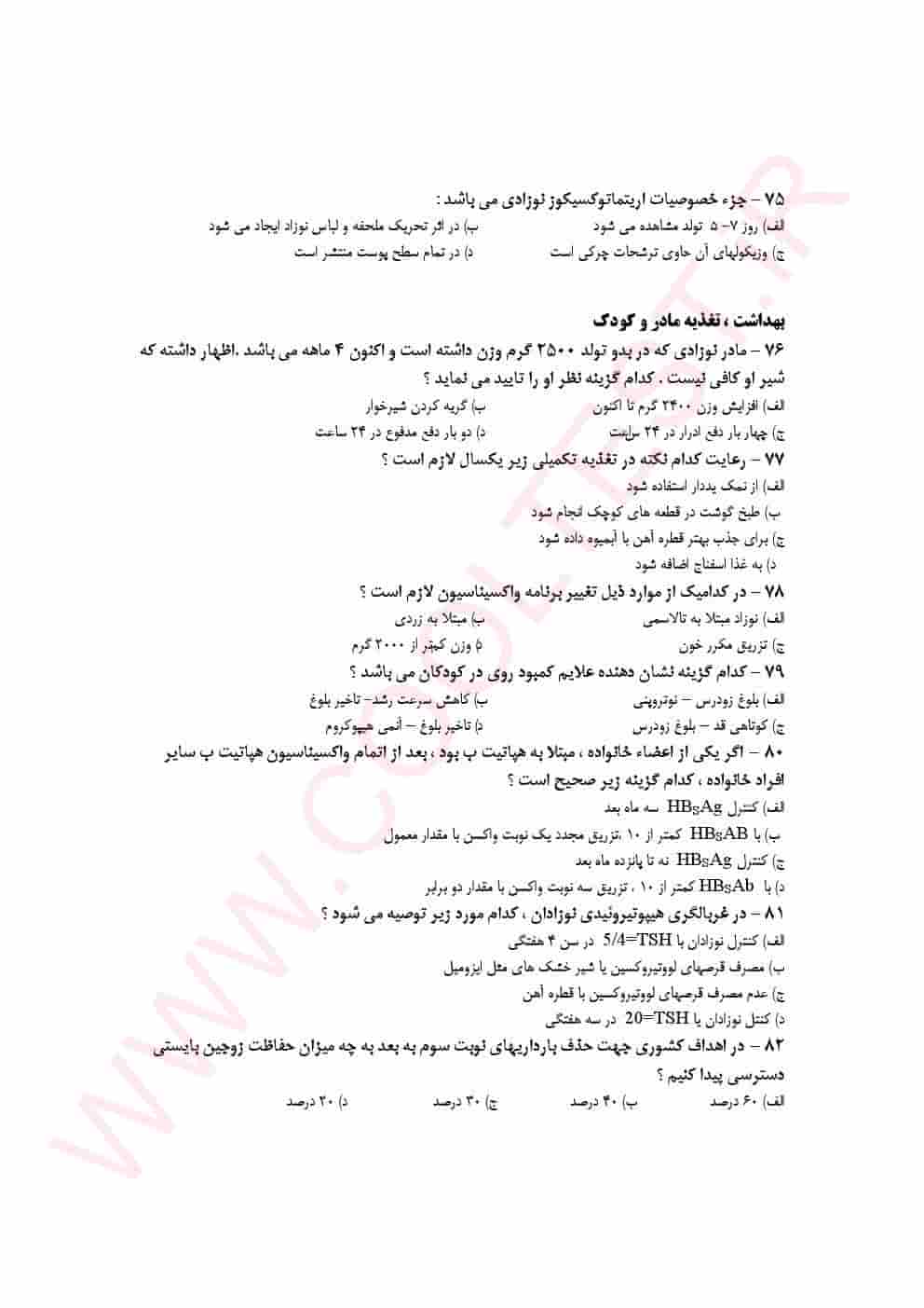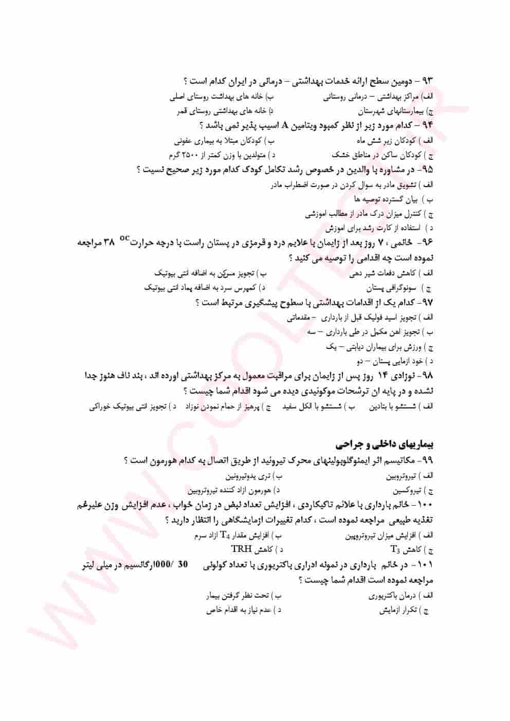 سوالات رایگان آزمون مامایی وزارت بهداشت با پاسخنامه