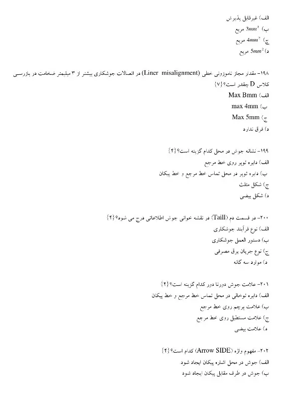 علاوه بر نمونه سوالات، جزوات آموزشی تخصصی نیز در سایت موجود است که میتوانید با جستجو به آنها دسترسی داشته باشید. این جزوات تمامی نکات مهم مربوط به فرآیند بازرسی و کنترل کیفیت جوشکاری را بهطور کامل و کاربردی توضیح دادهاند.