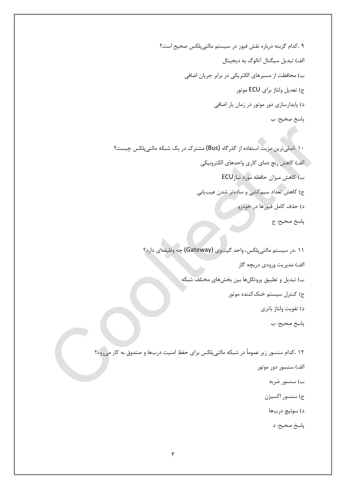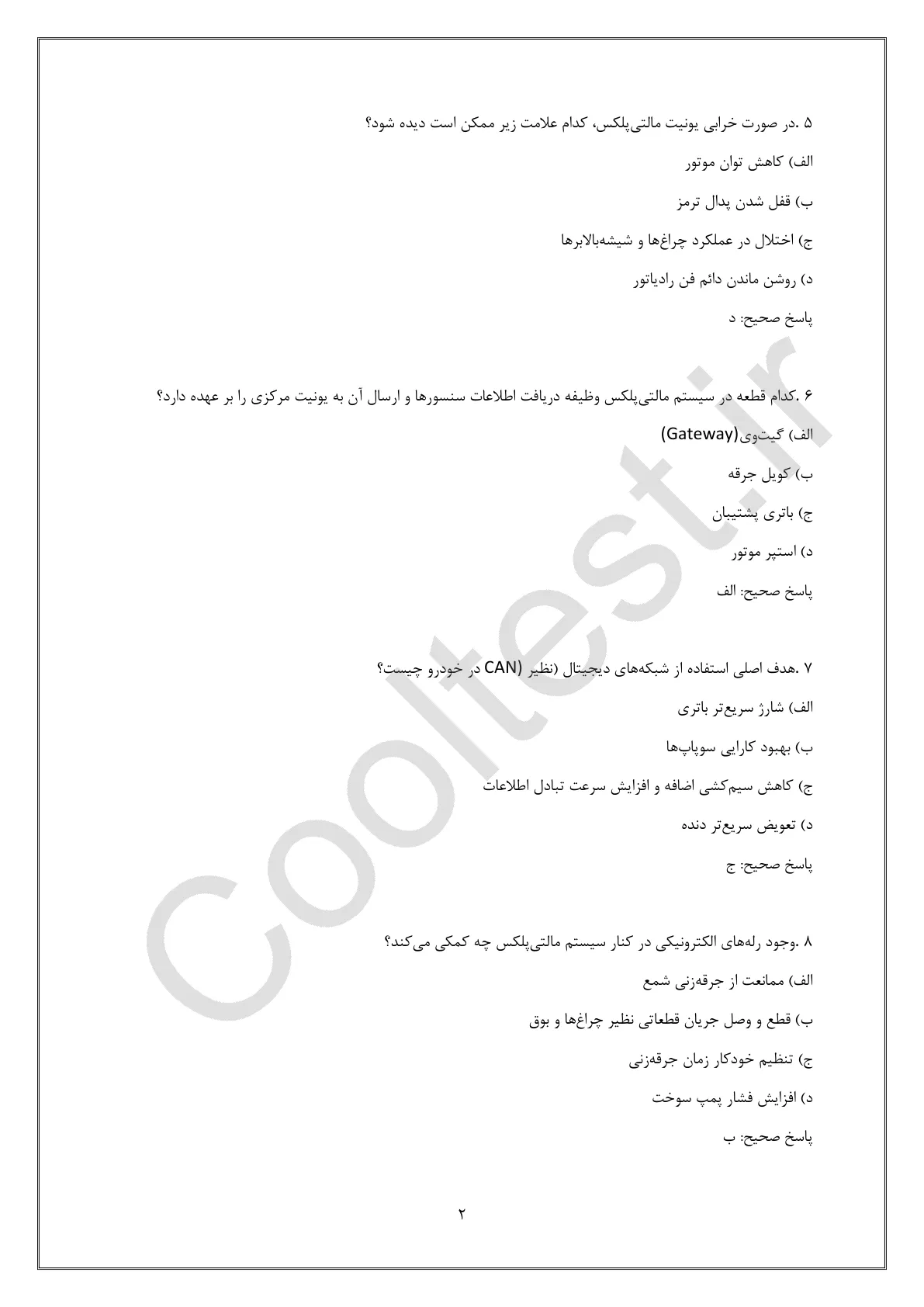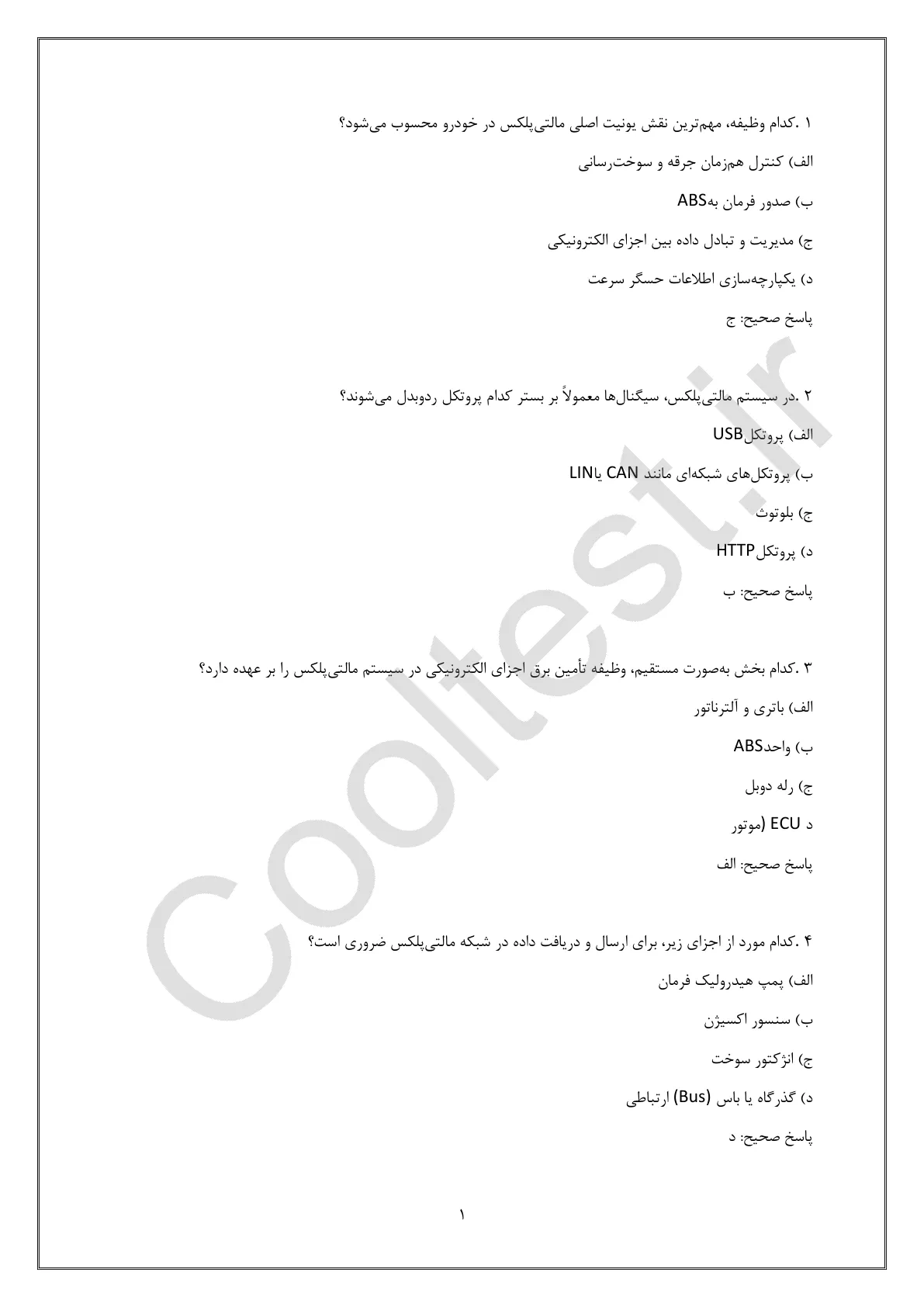 مجموعه کامل نمونه سوالات آزمون تعمیر سیستم مالتی پلکس فنی و حرفهای با پاسخ های تشریحی