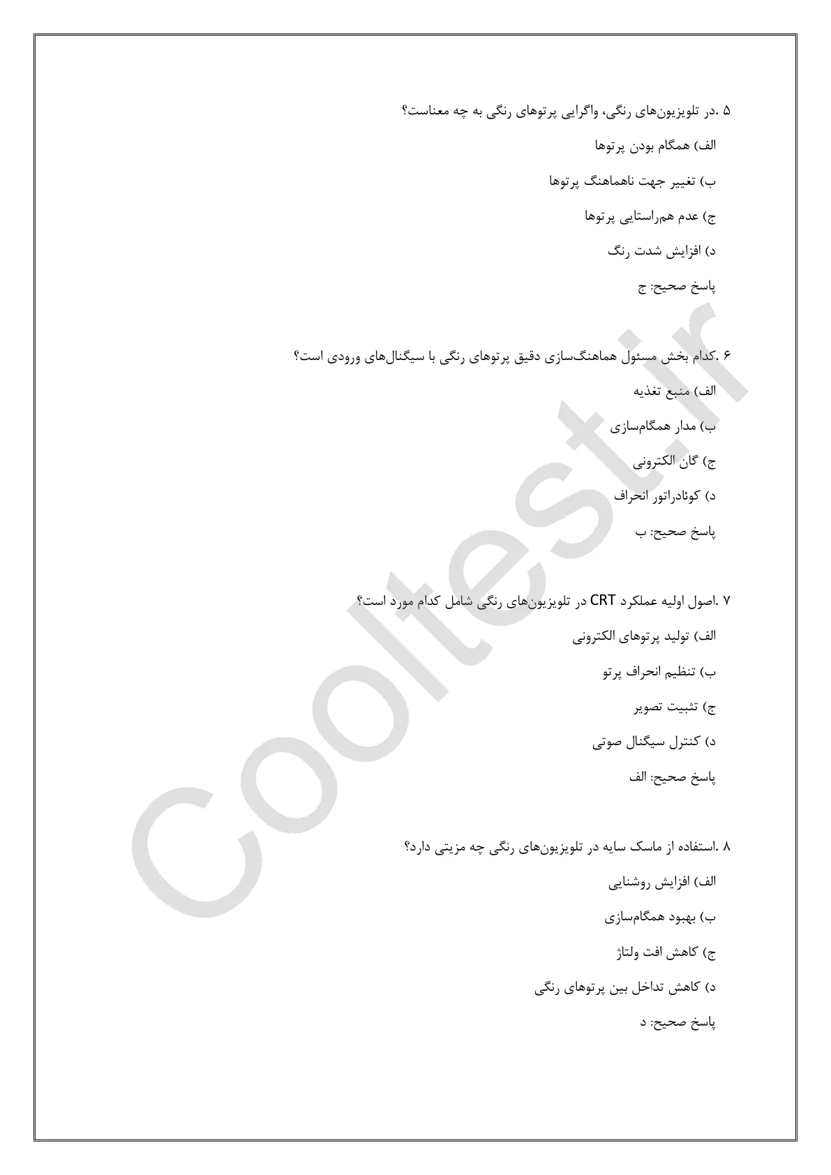 فهرست مطالب بسته سوالات تعمیرکار تلویزیون رنگی: