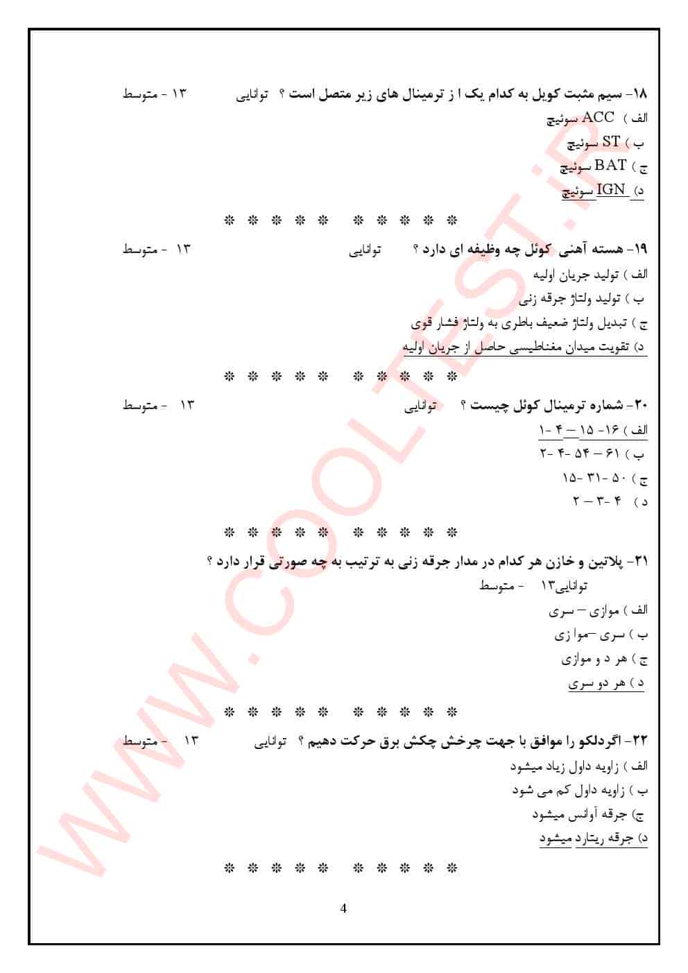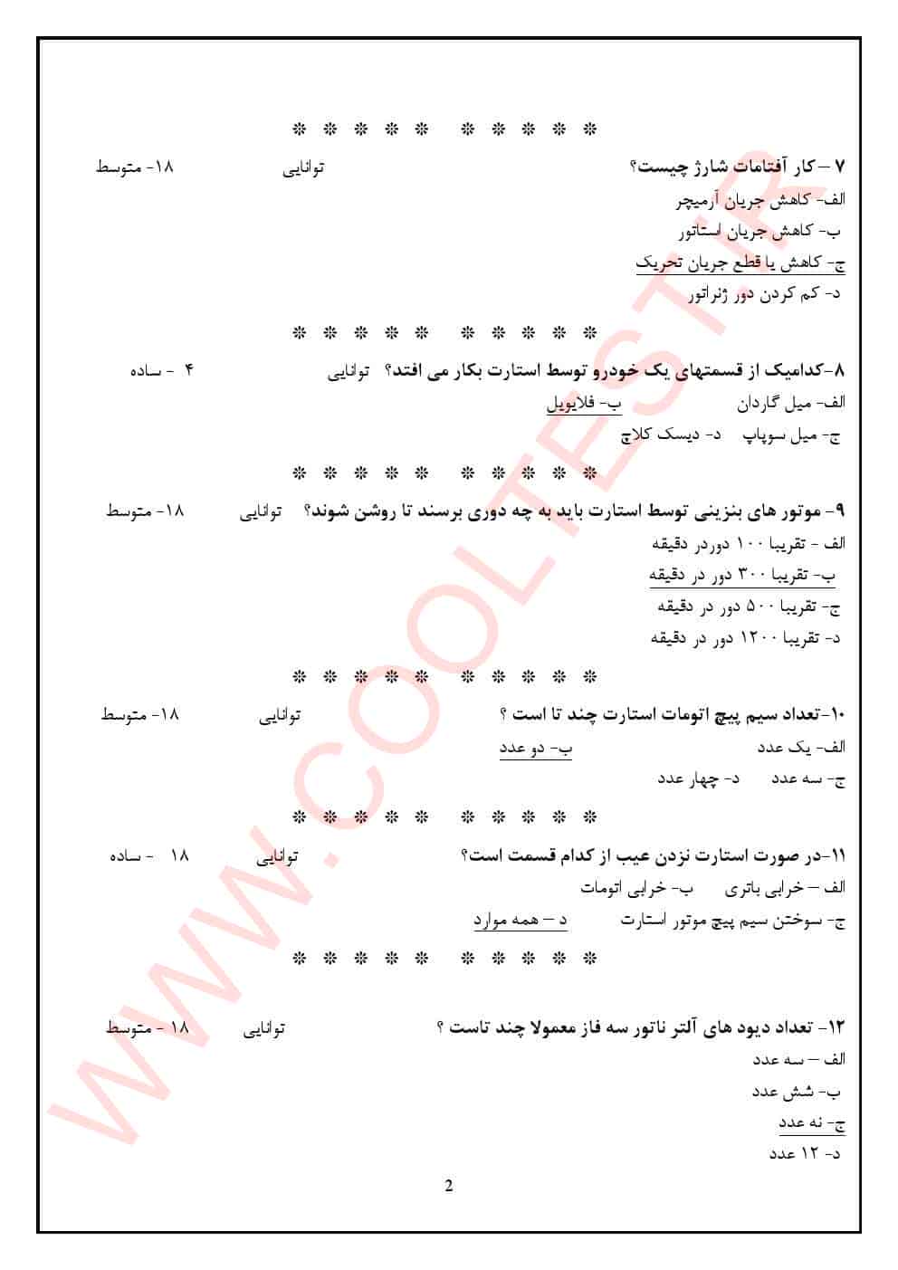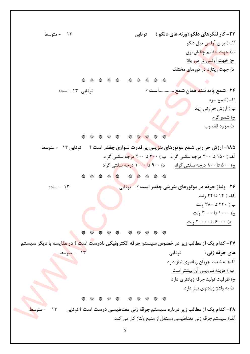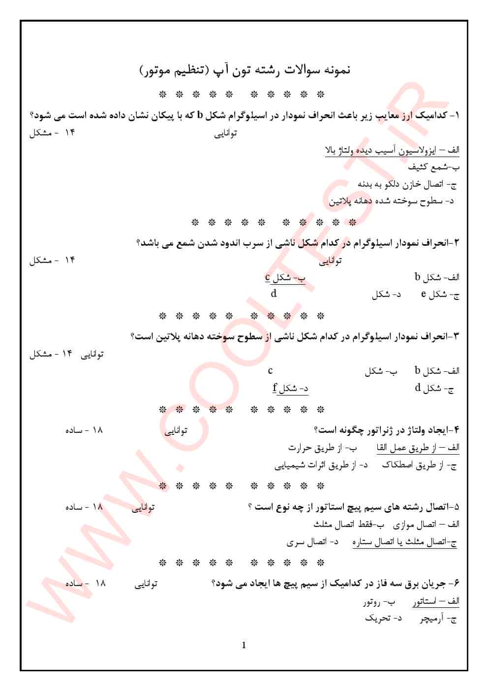 ویژگی‌ های بسته سوالات آزمون تون آپ تنظیم کارموتور با جواب