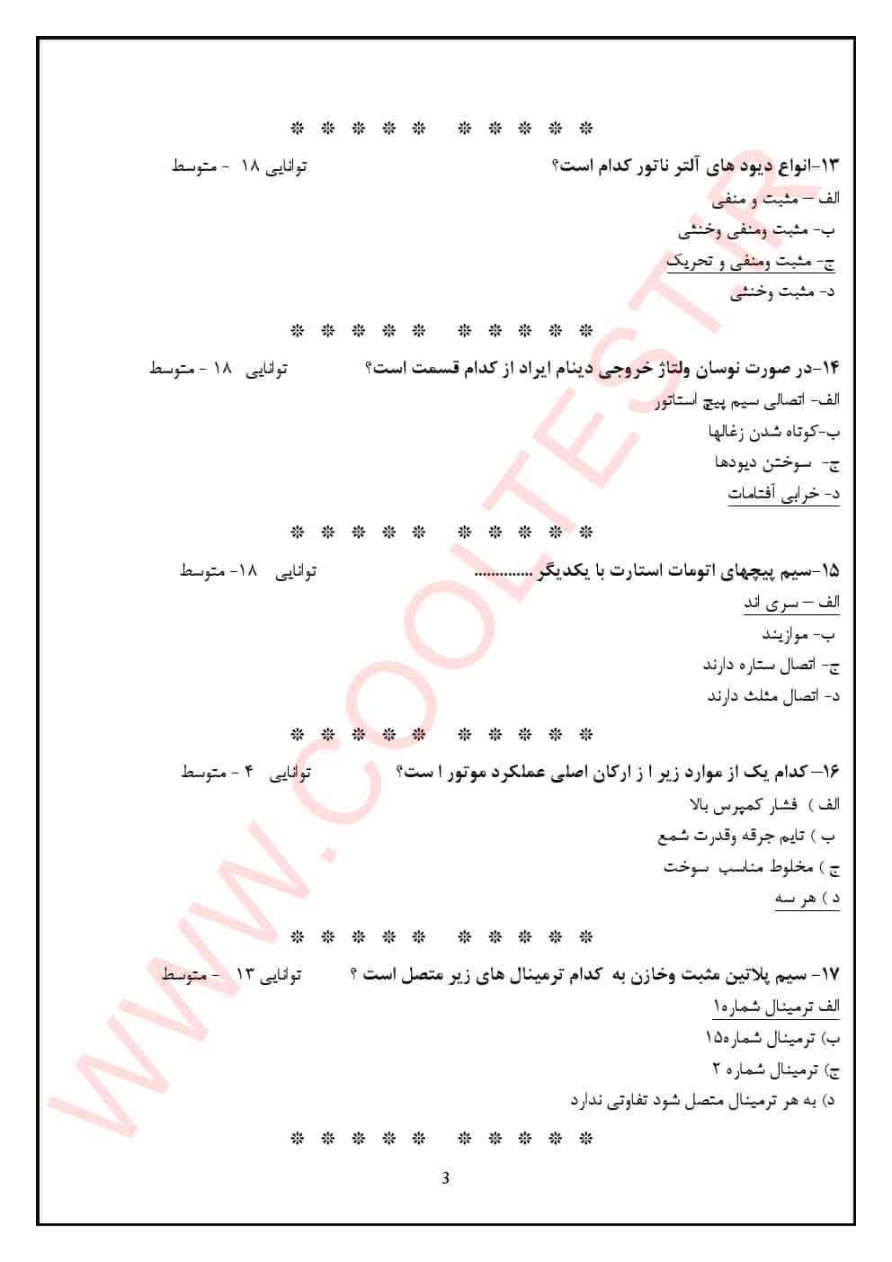 3 دیدگاه برای دانلود سوالات تون آپ تنظیم کارموتور 1404 فنی حرفه ای با جواب