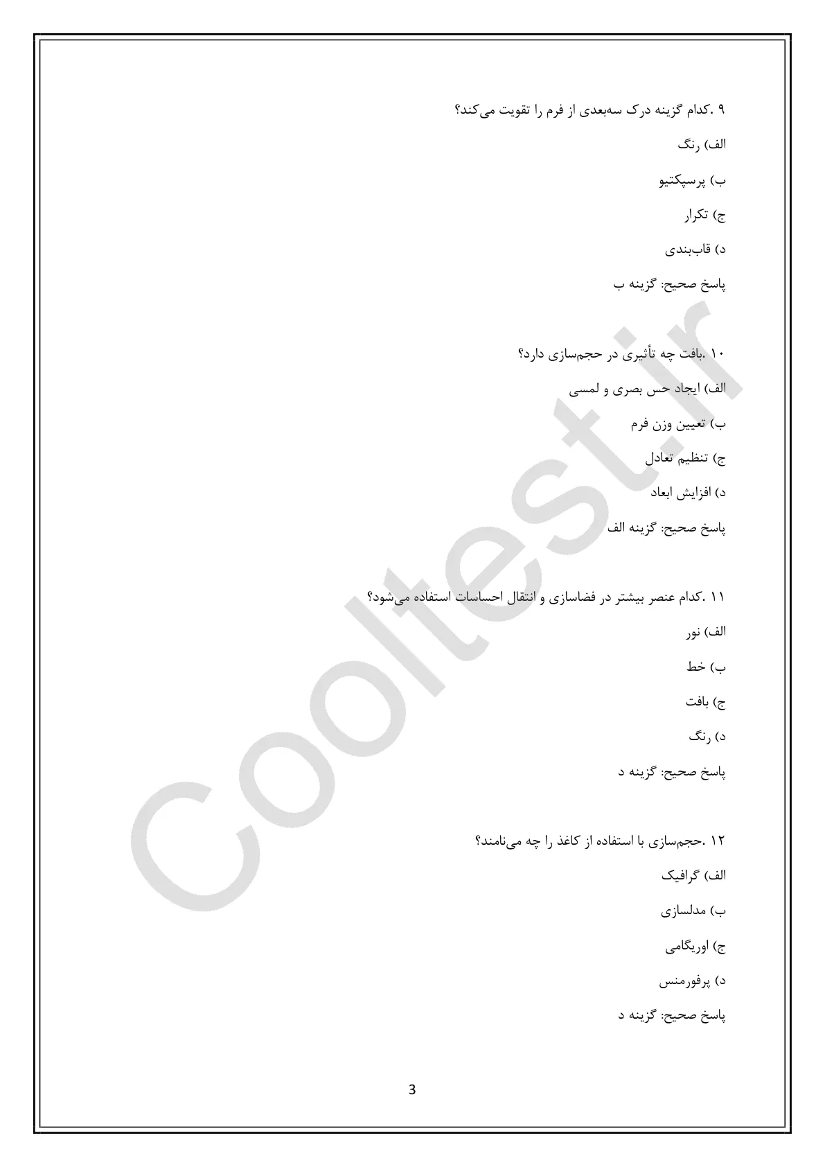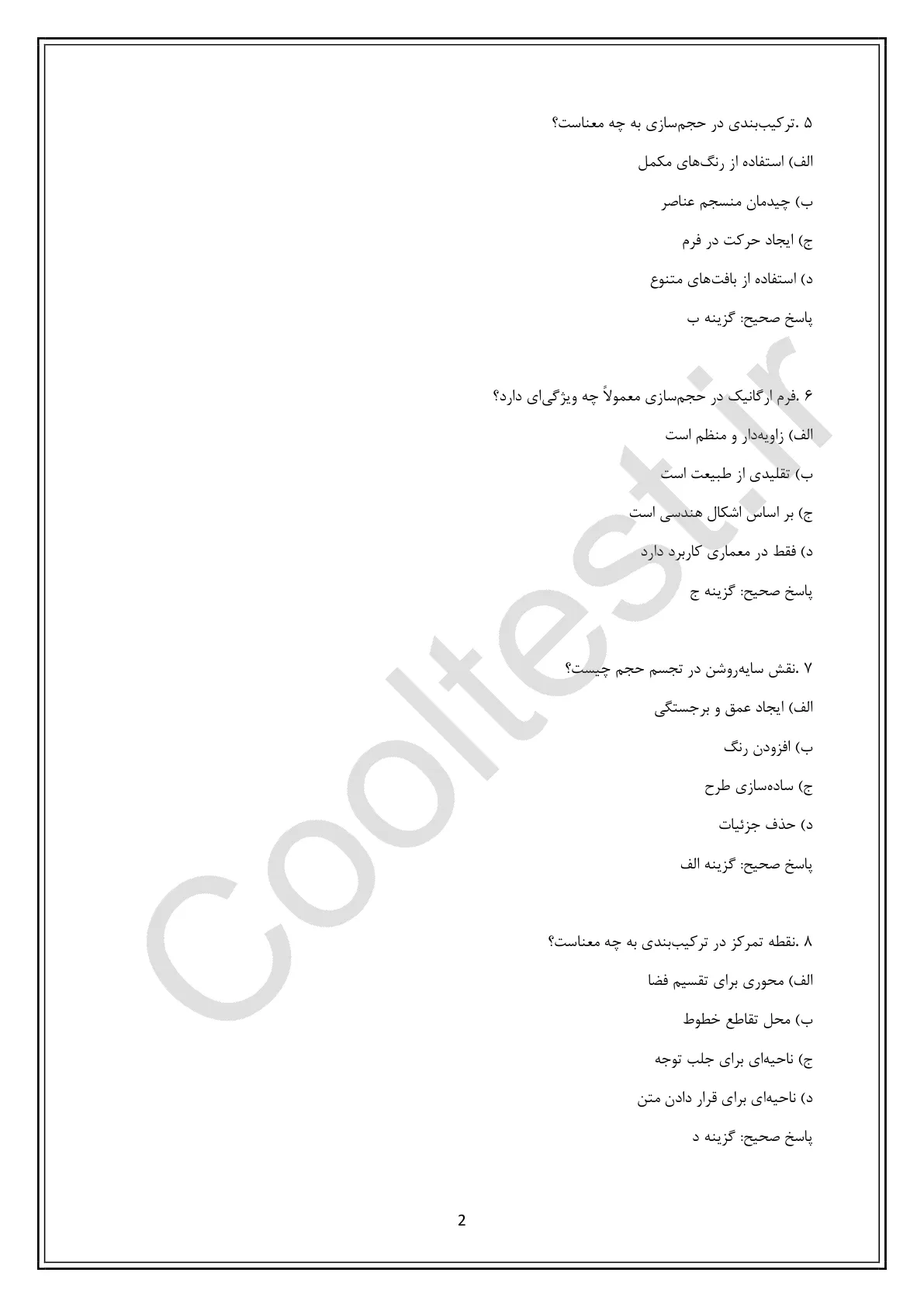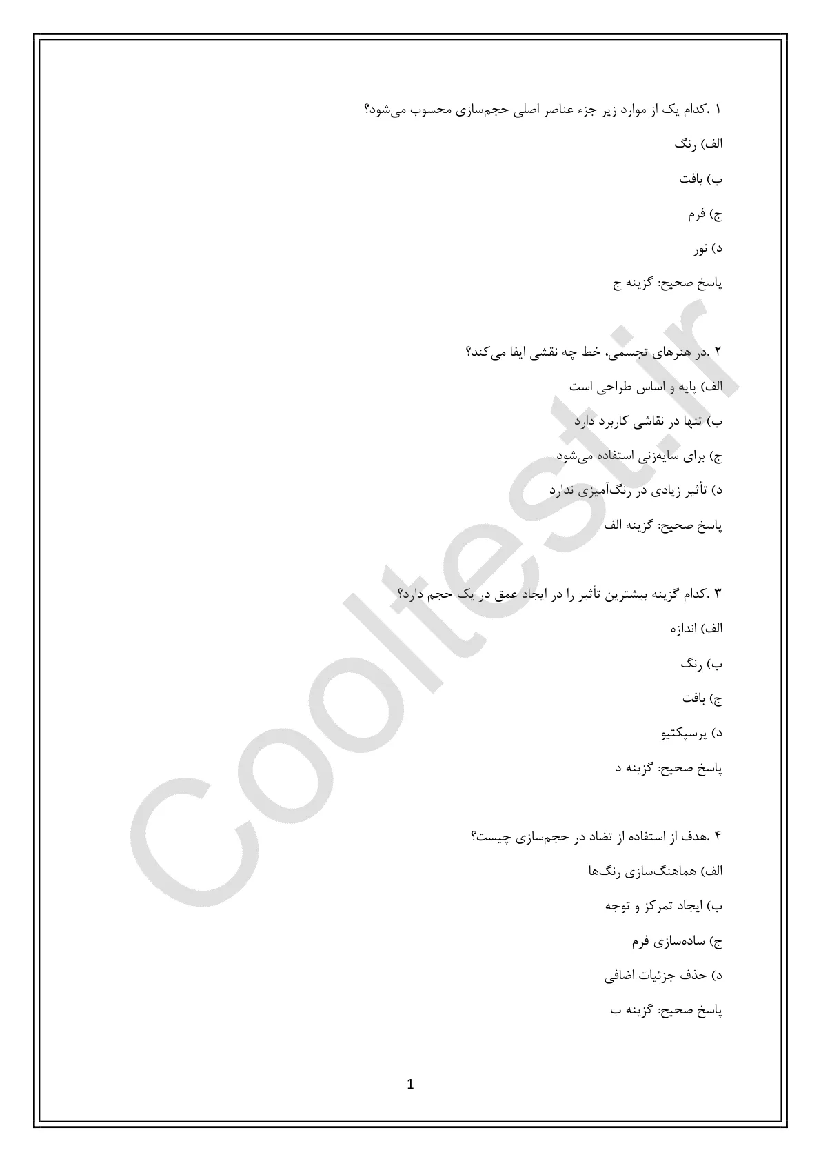 | اصول و مبانی حجم سازی و هنر های تجسمی | 75 سوال |