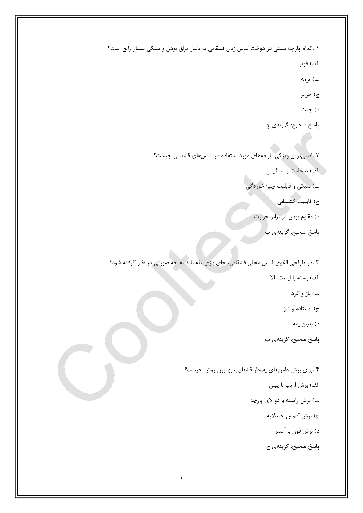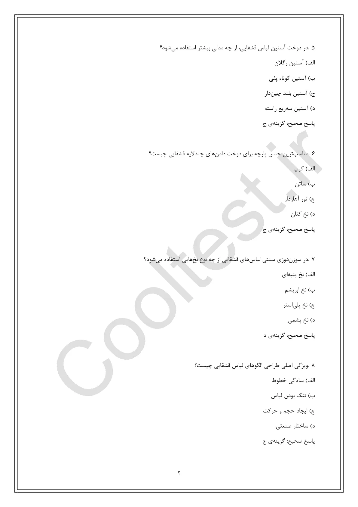 مجموعه کامل 350 سوال تخصصی آزمون دوزنده لباس محلی زنان قشقایی فنی حرفه ای همراه با پاسخ های تشریحی