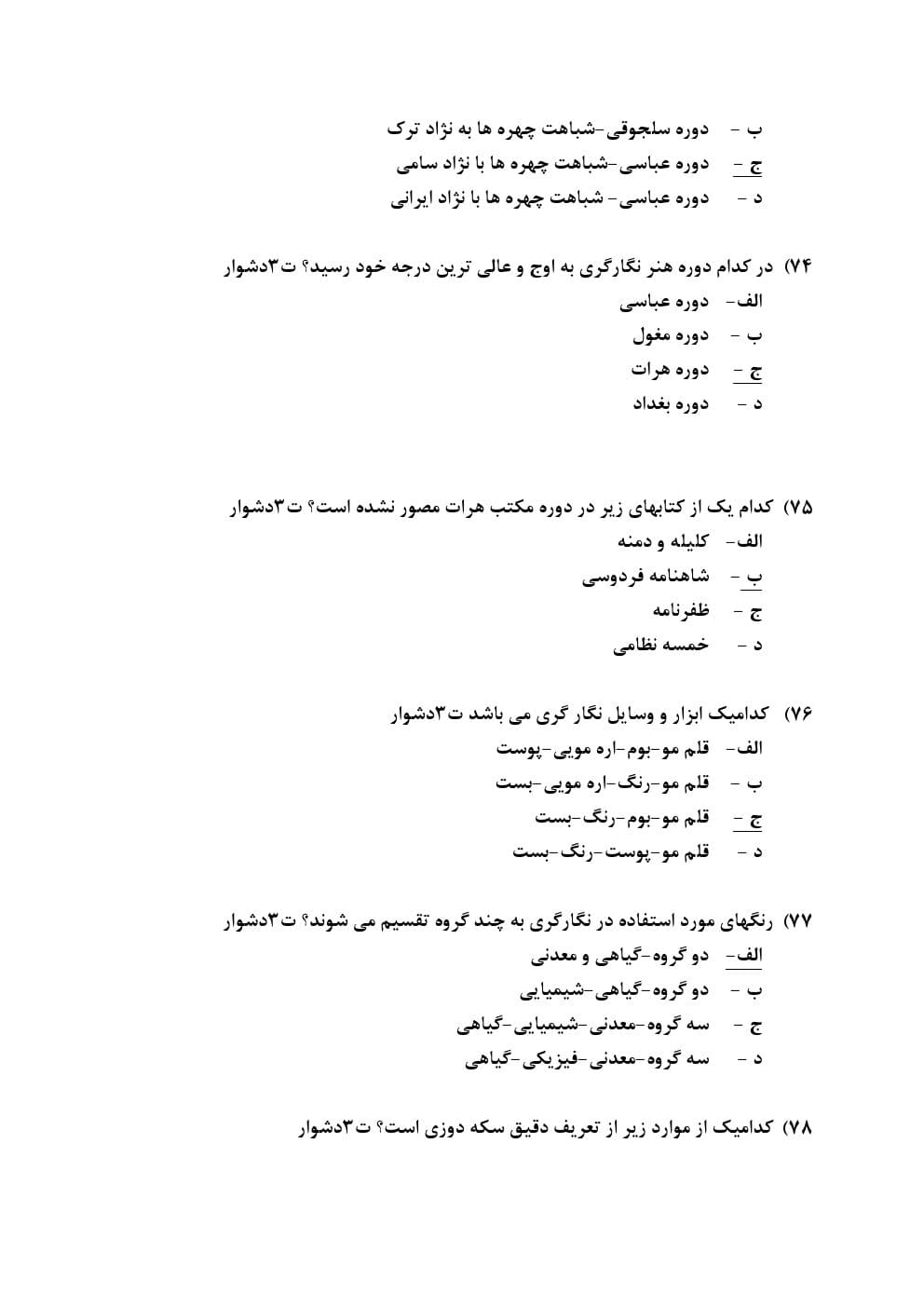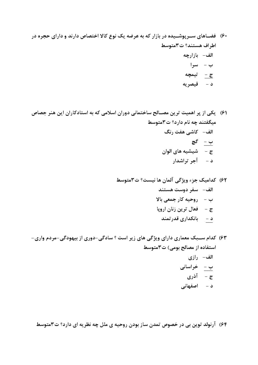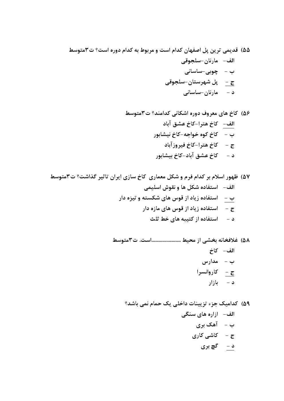 سوالات تاریخ و تمدن ایران قبل و بعد از اسلام