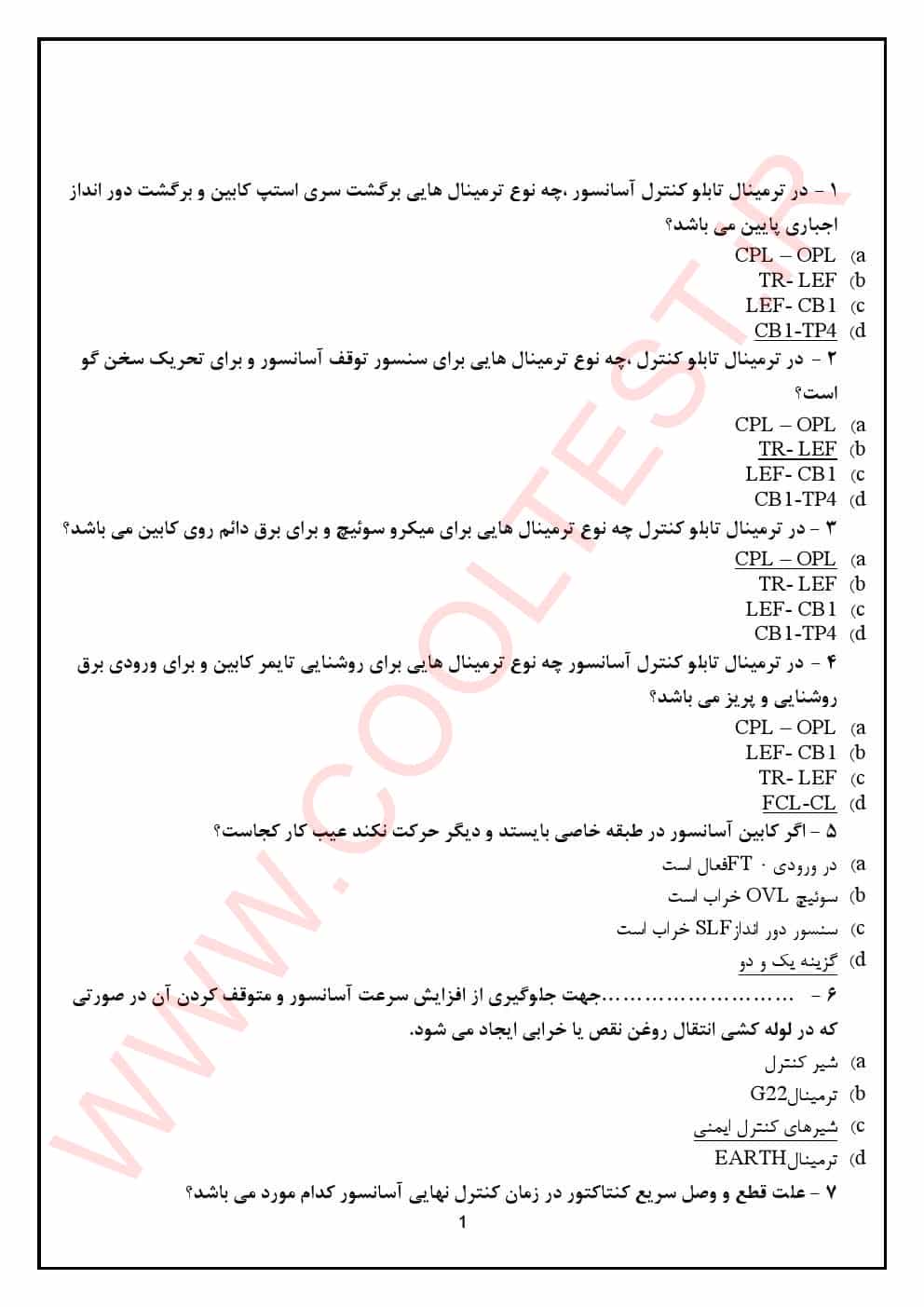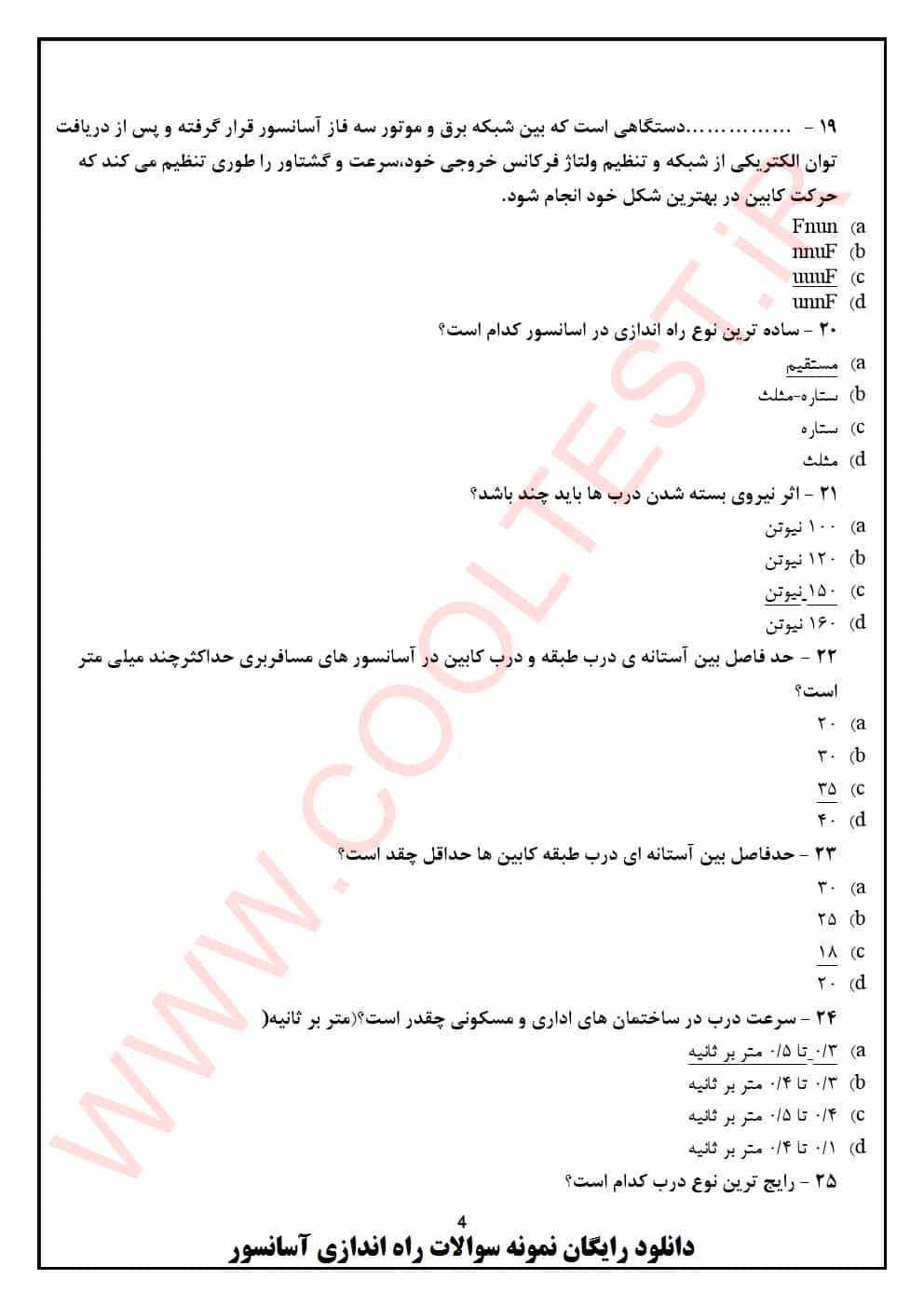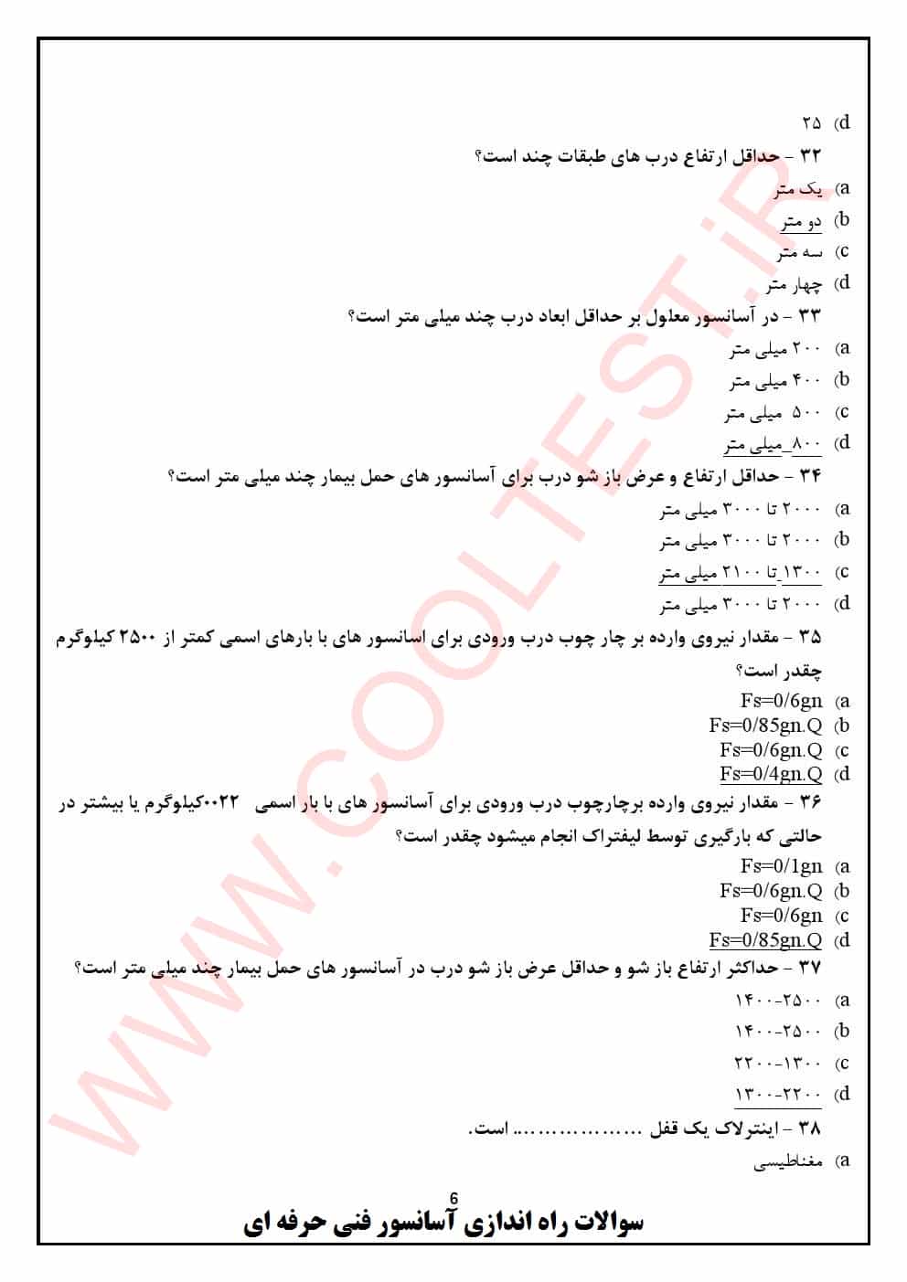 دانلود نمونه سوالات راه اندازی آسانسور پایه 3 فنی حرفه ای 1404 با جواب
