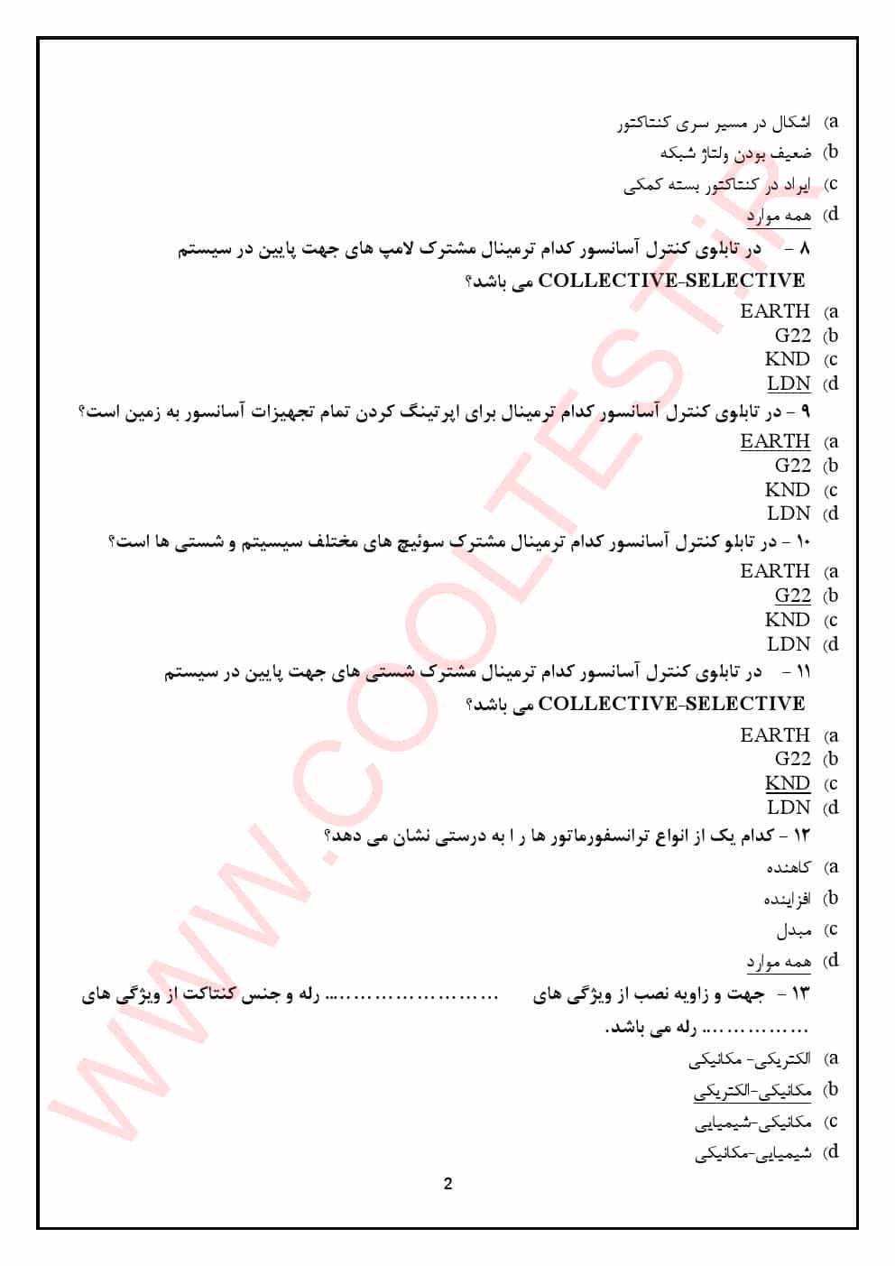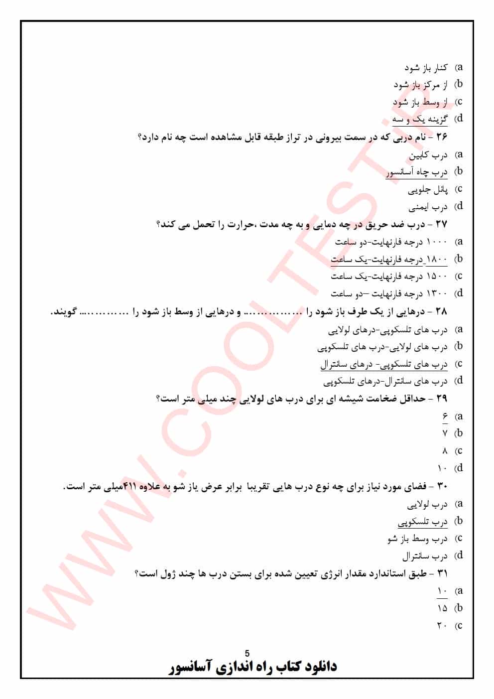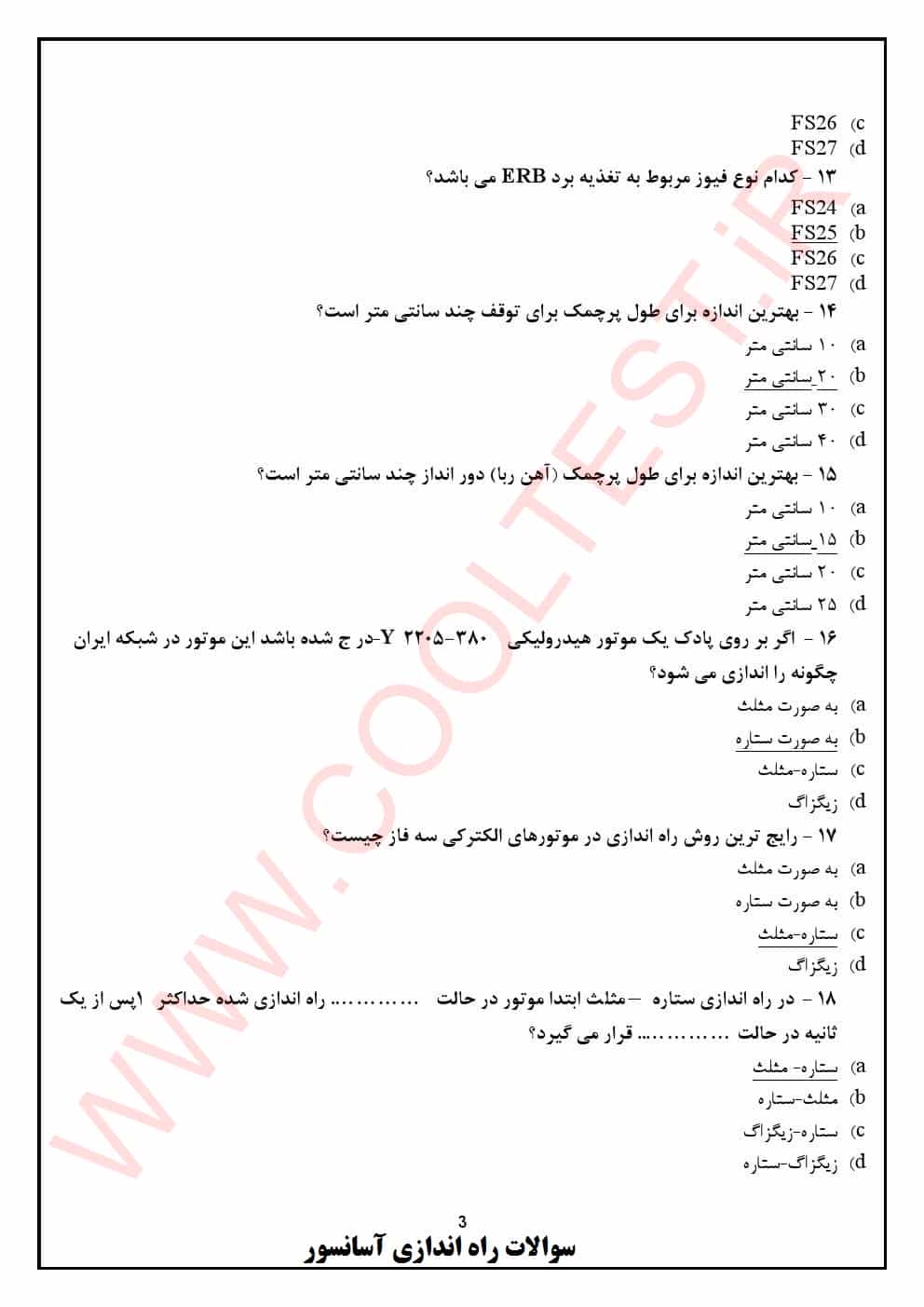 دانلود نمونه سوالات راه اندازی آسانسور پایه 3 فنی حرفه ای 1404 با جواب