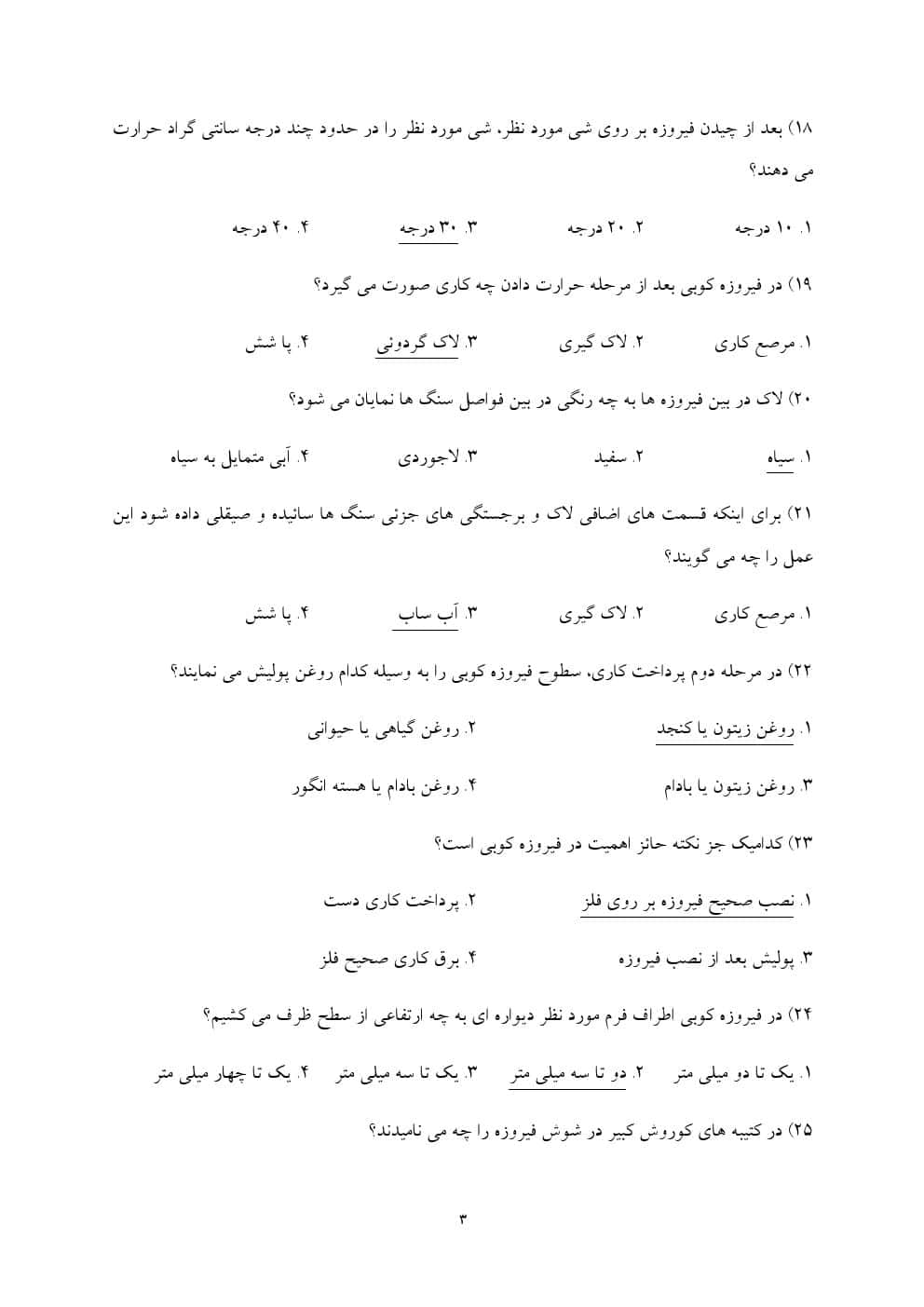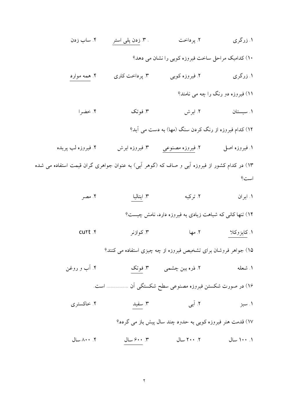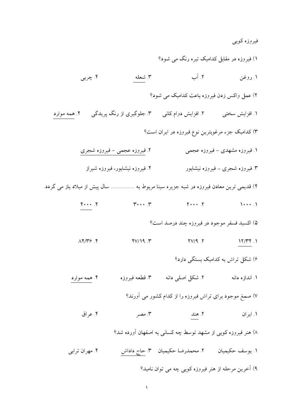 (کاملترین بسته سوالات آزمون فیروزه کوبی در کشور)