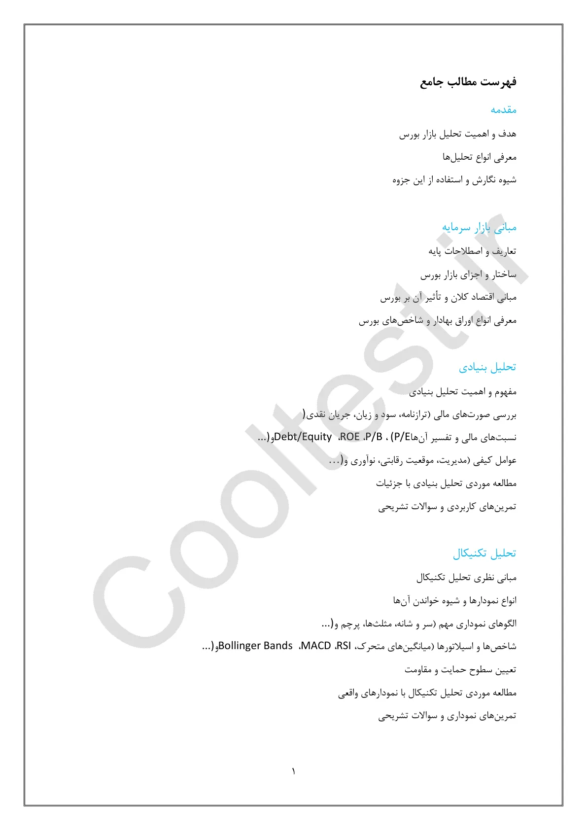 | ۶. جزوه آموزشی تحلیل بازار بورس | – | جزوهای کامل که تمامی نکات کلیدی برای موفقیت در آزمون را پوشش میدهد. |