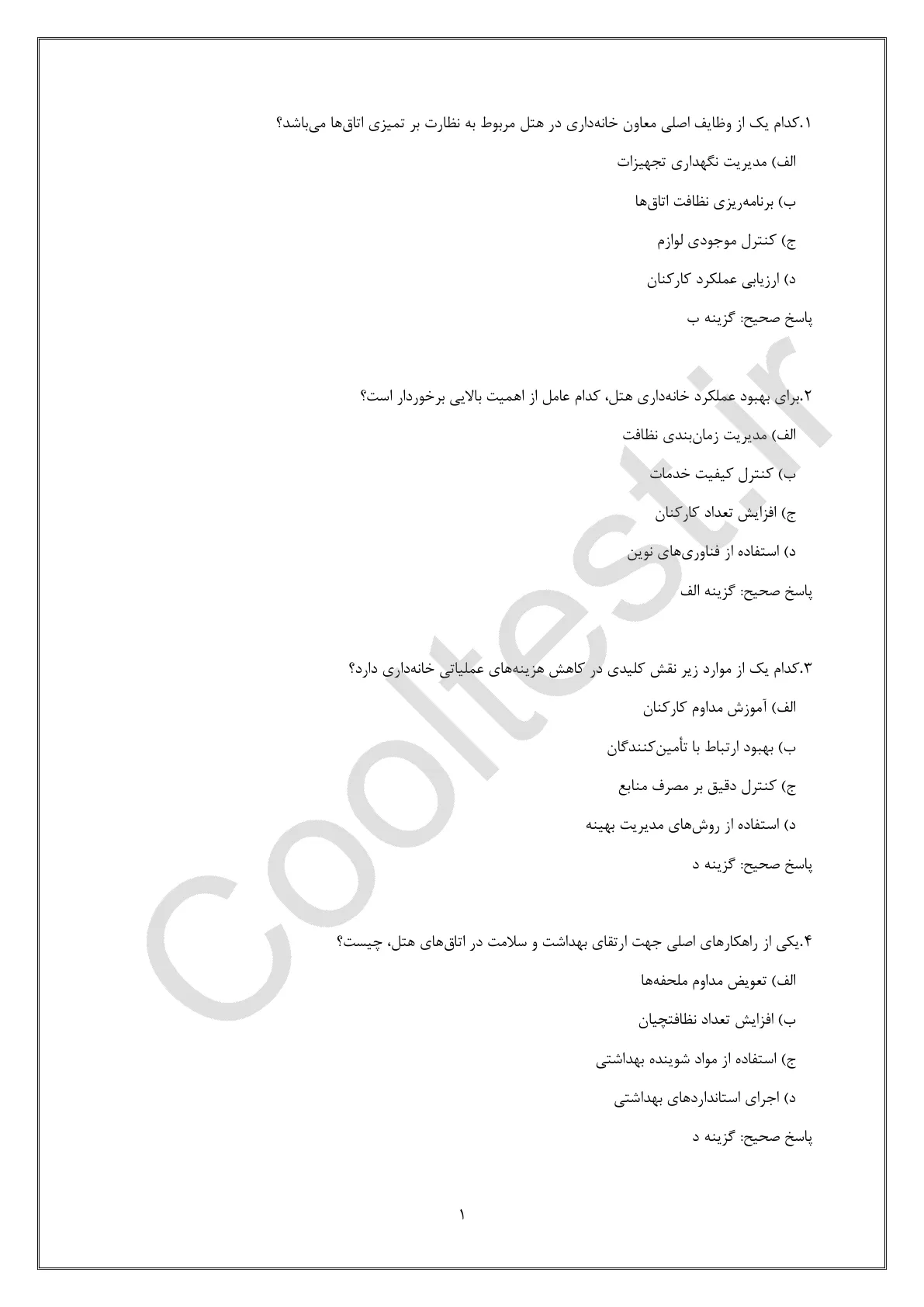 | اصول و مبانی خانهداری در هتل | 50 سوال |