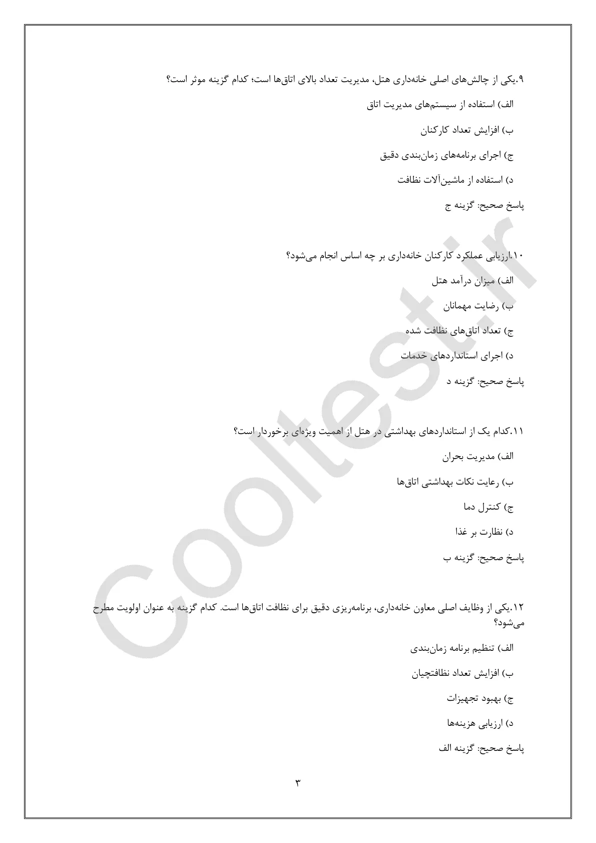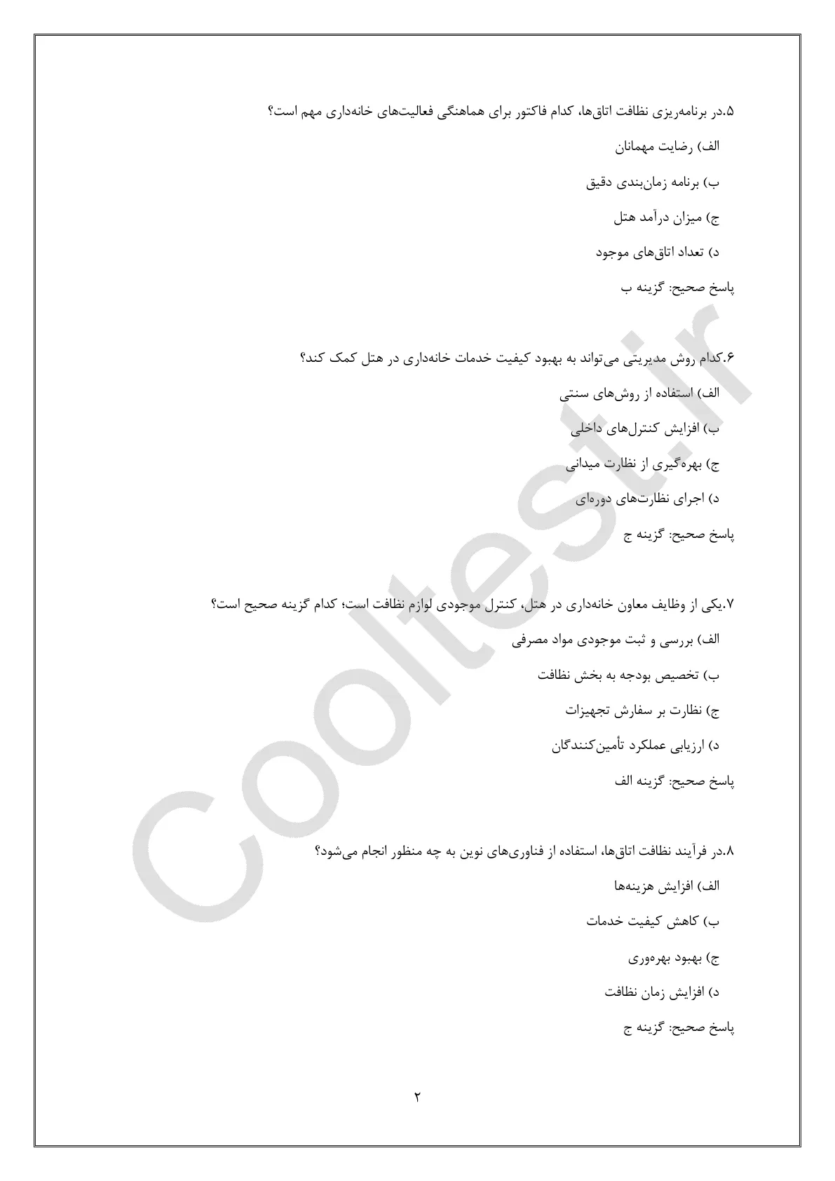 | مدیریت و نظارت بر کارکنان خانهداری | 45 سوال |