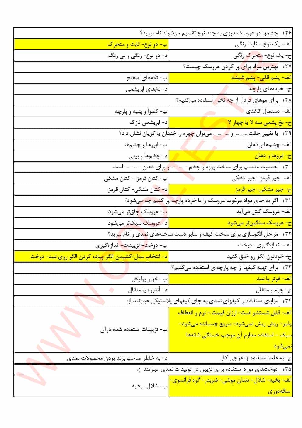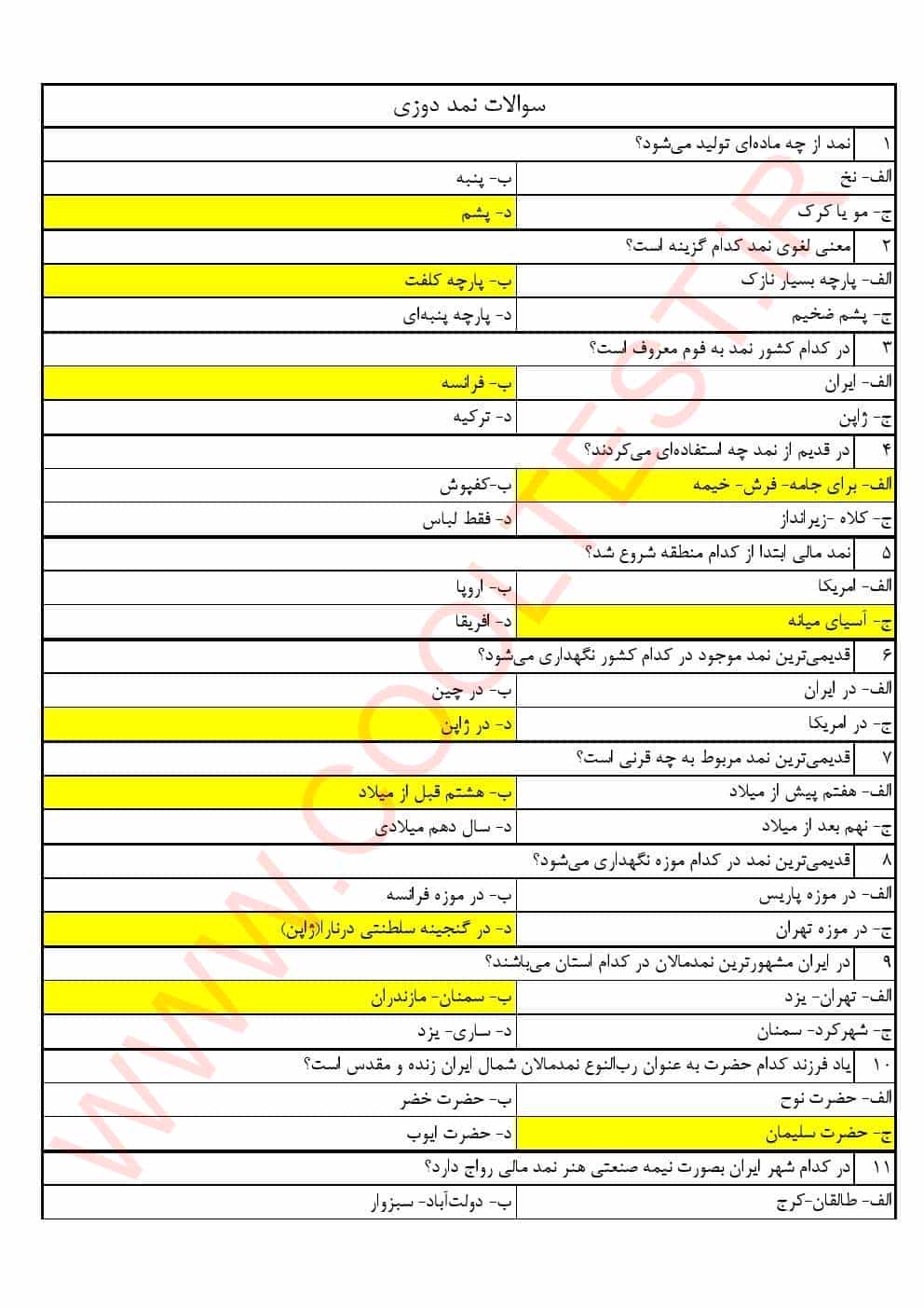 این بخش شامل سوالات مرتبط با مباحث تخصصی نمد دوزی است که شامل: