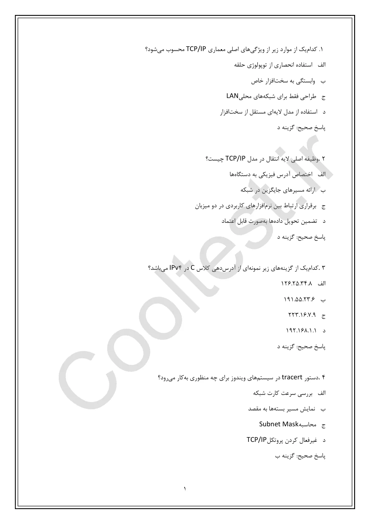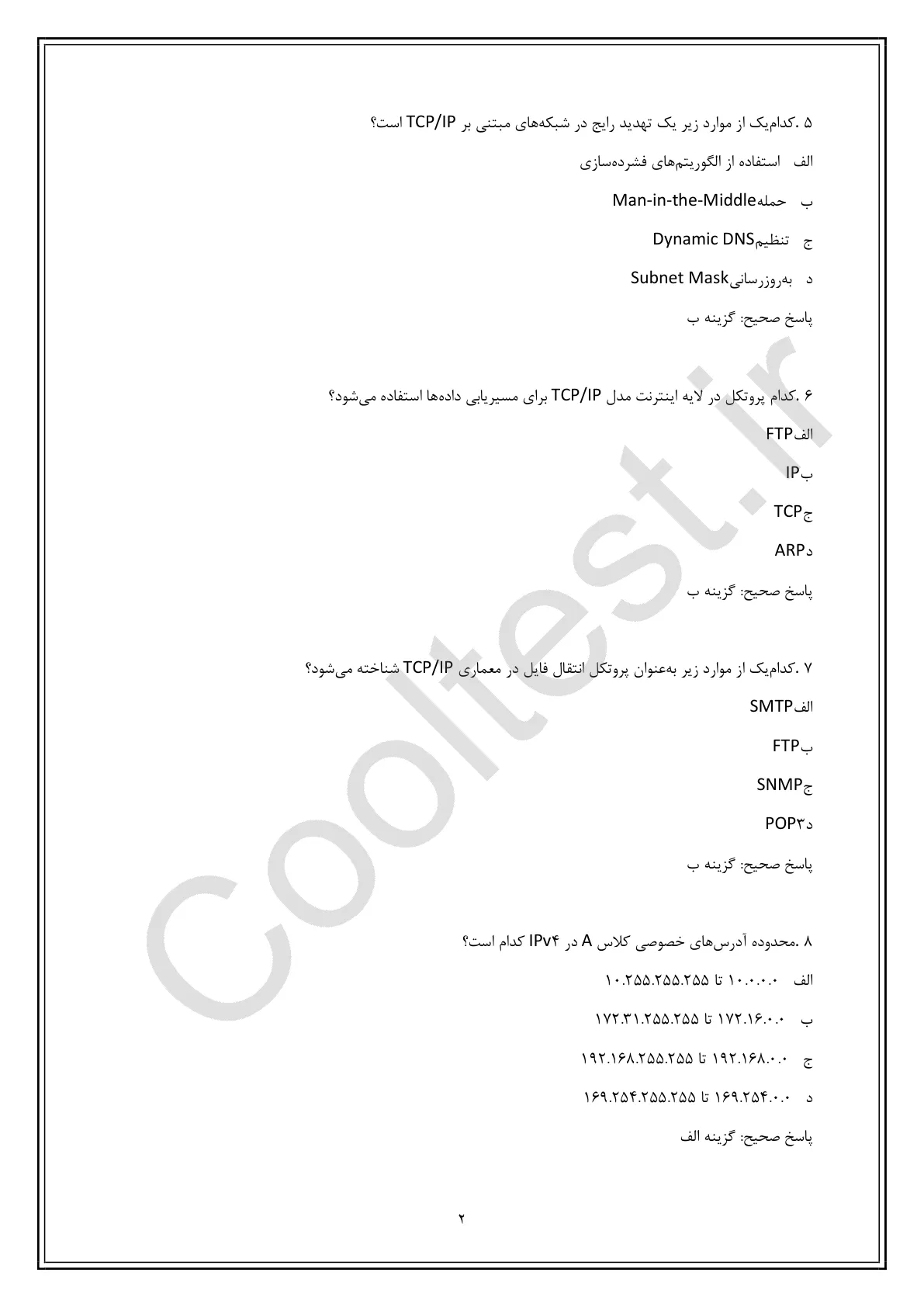 این بخش شامل ۷ سوال تستی پرتکرار و مهم از بخش های تخصصی است که در بسته کامل موجود هستند: