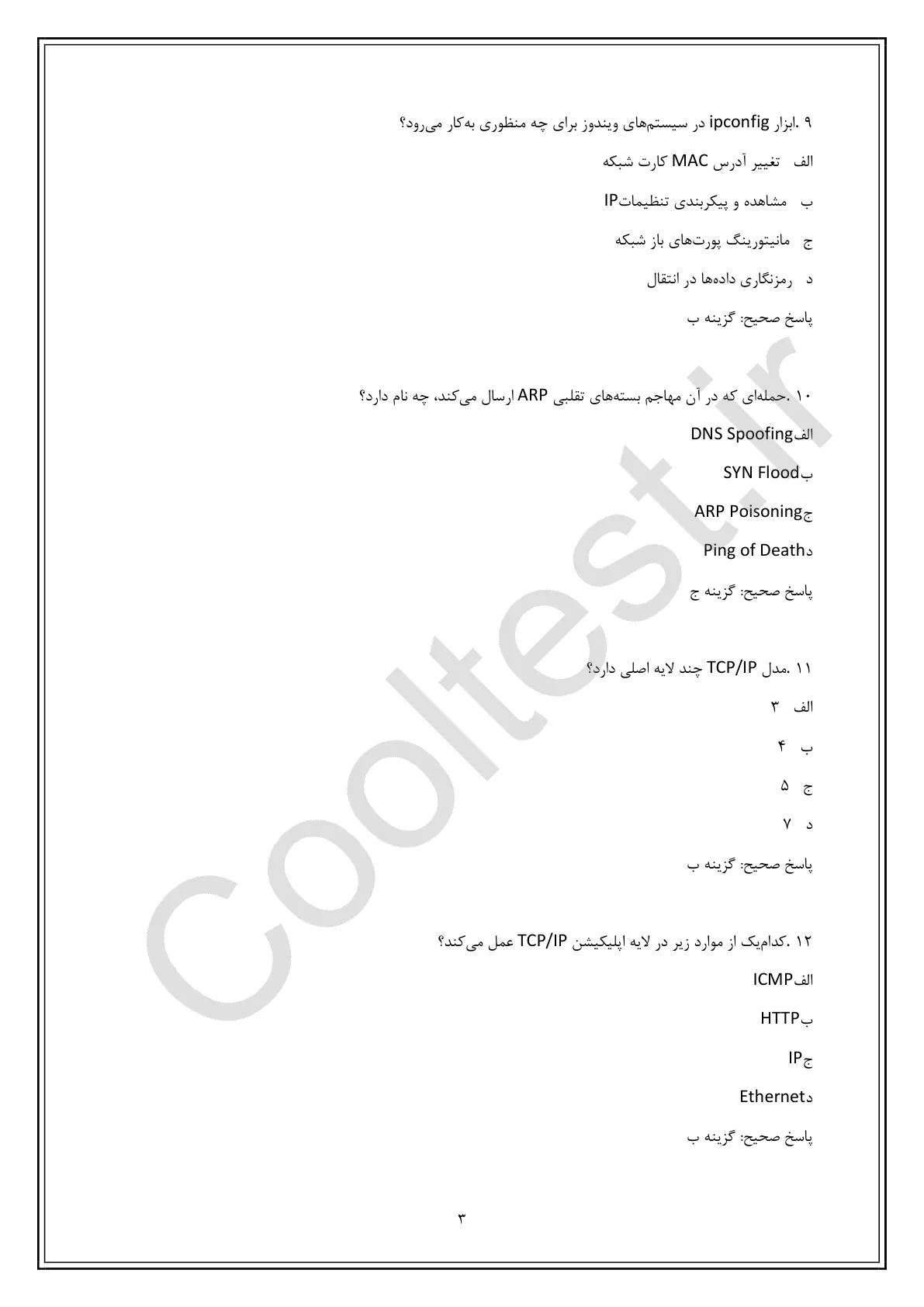 | لایههای TCP/IP | بررسی عملکرد لایههای مختلف مانند لایه انتقال و لایه شبکه. |