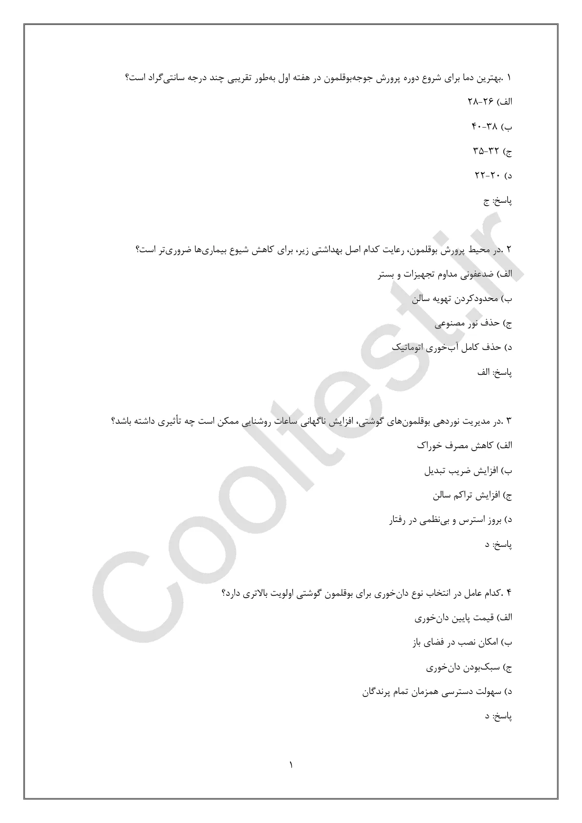 1 دیدگاه برای دانلود نمونه سوالات پرورش دهنده بوقلمون گوشتی فنی حرفه ای 1404 با جواب
