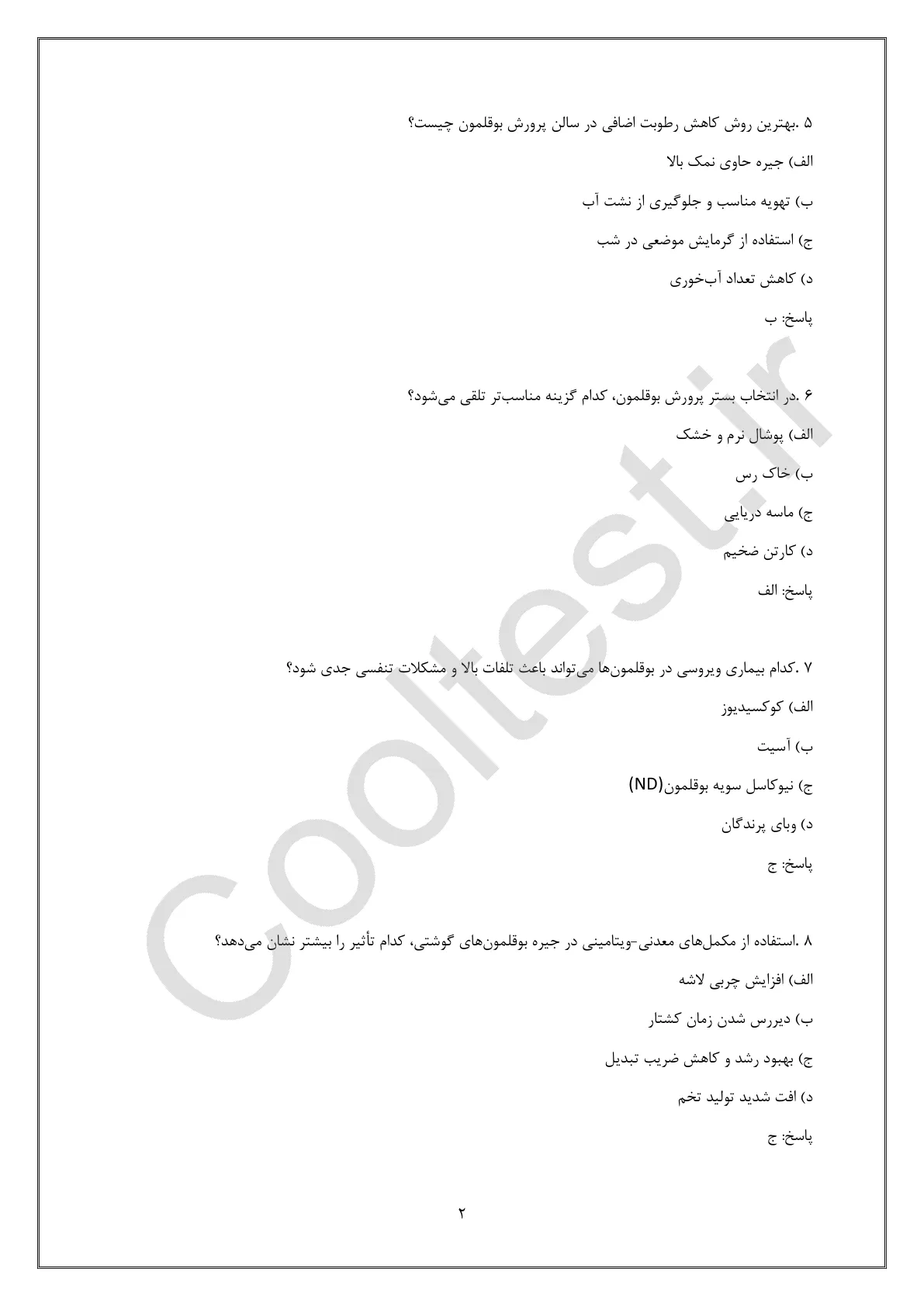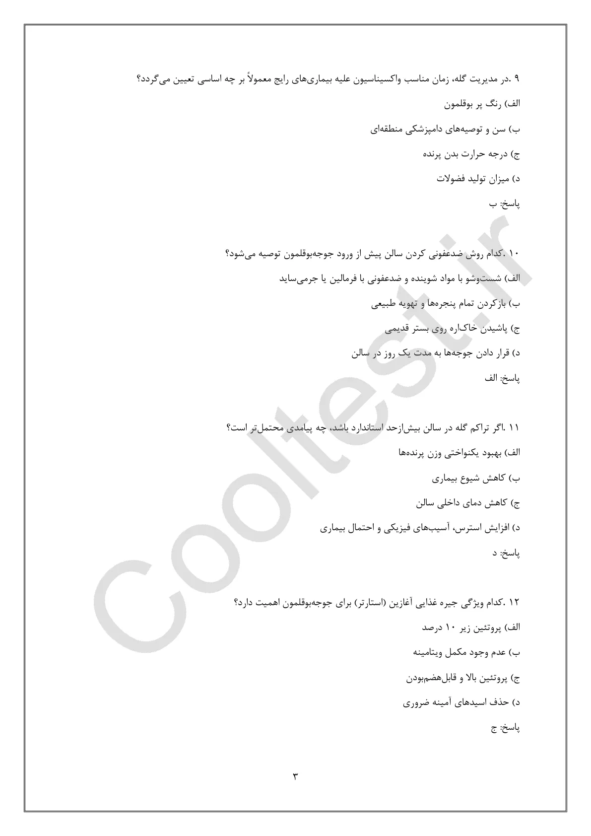 نمونه سوالات پرورش دهنده بوقلمون گوشتی فنی حرفه ای