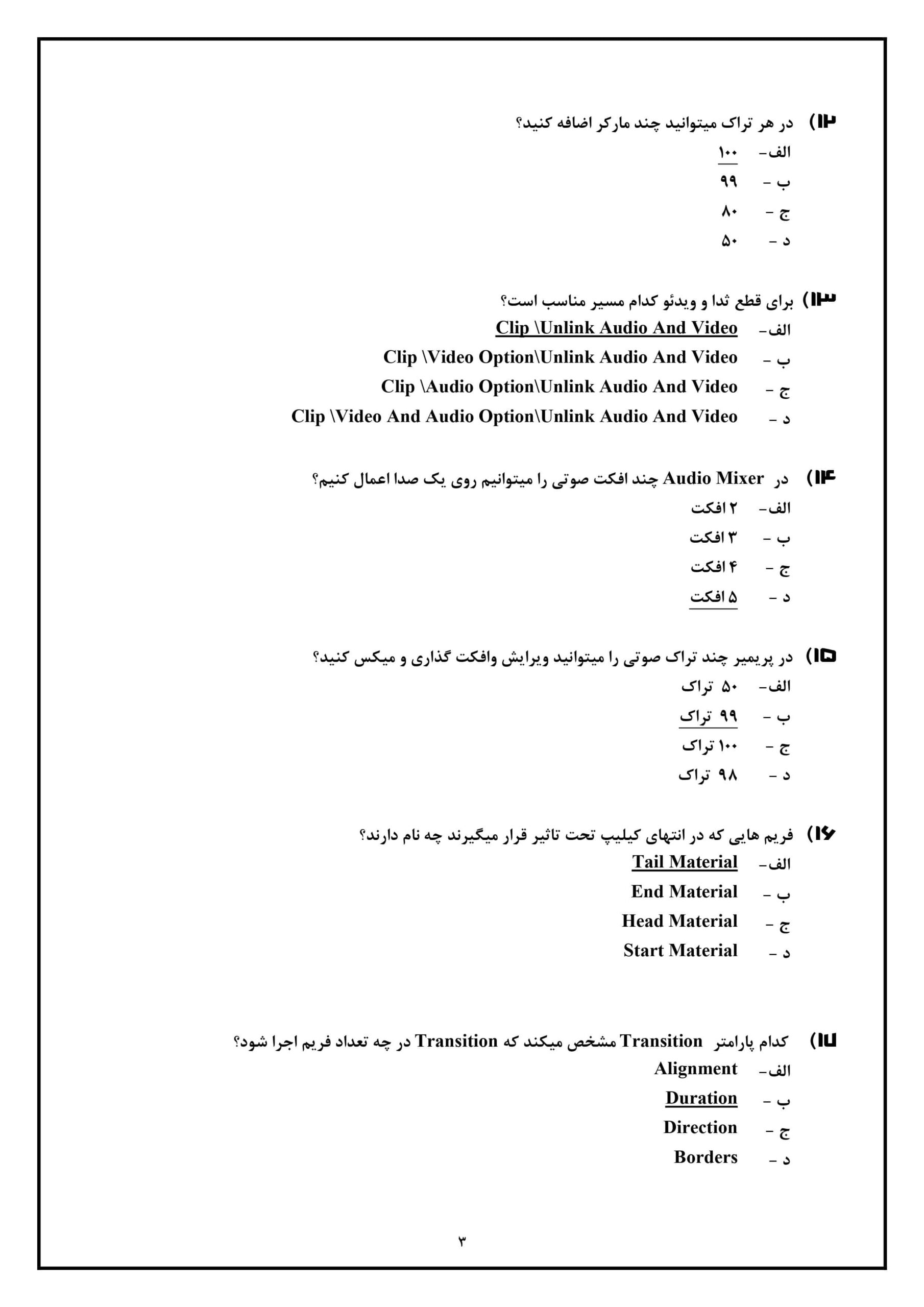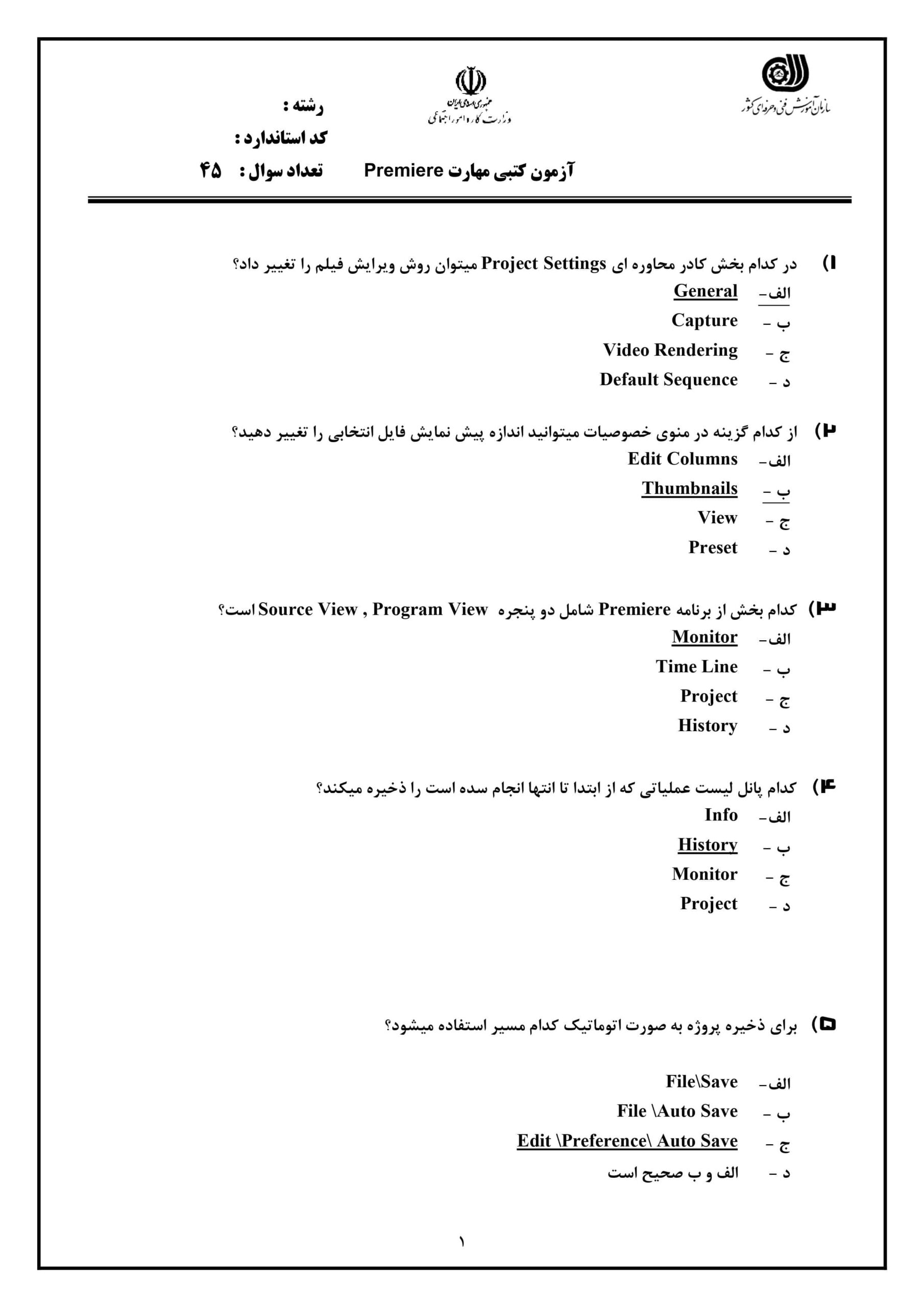 علاوه بر نمونه سوالات، جزوات آموزشی تخصصی نیز در سایت موجود است که میتوانید با جستجو به آنها دسترسی داشته باشید. این جزوات تمامی نکات مهم مربوط به ویرایش ویدئو با پریمیر پرو را بهطور کامل توضیح دادهاند.