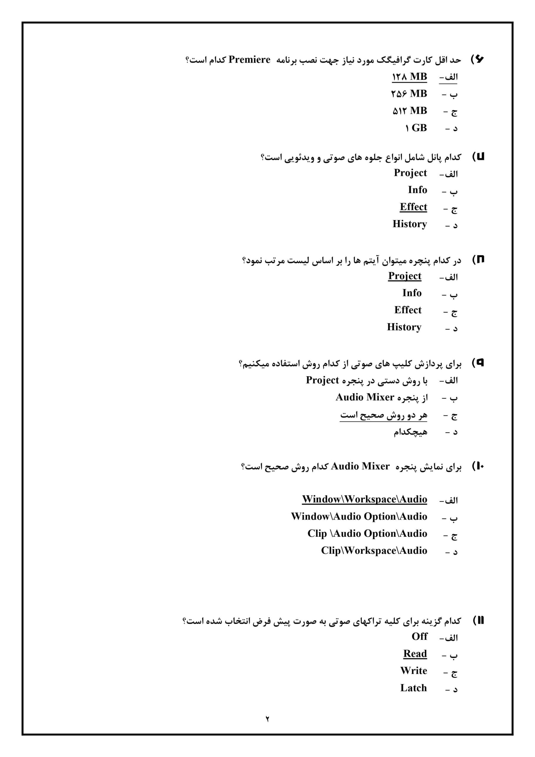 نمونه سوالات تخصصی همراه با پاسخنامه تستی و تشریحی