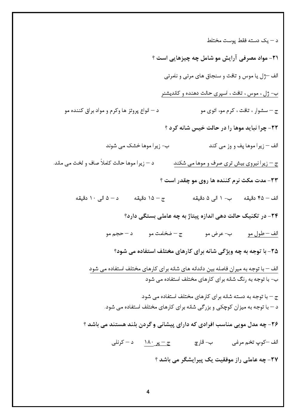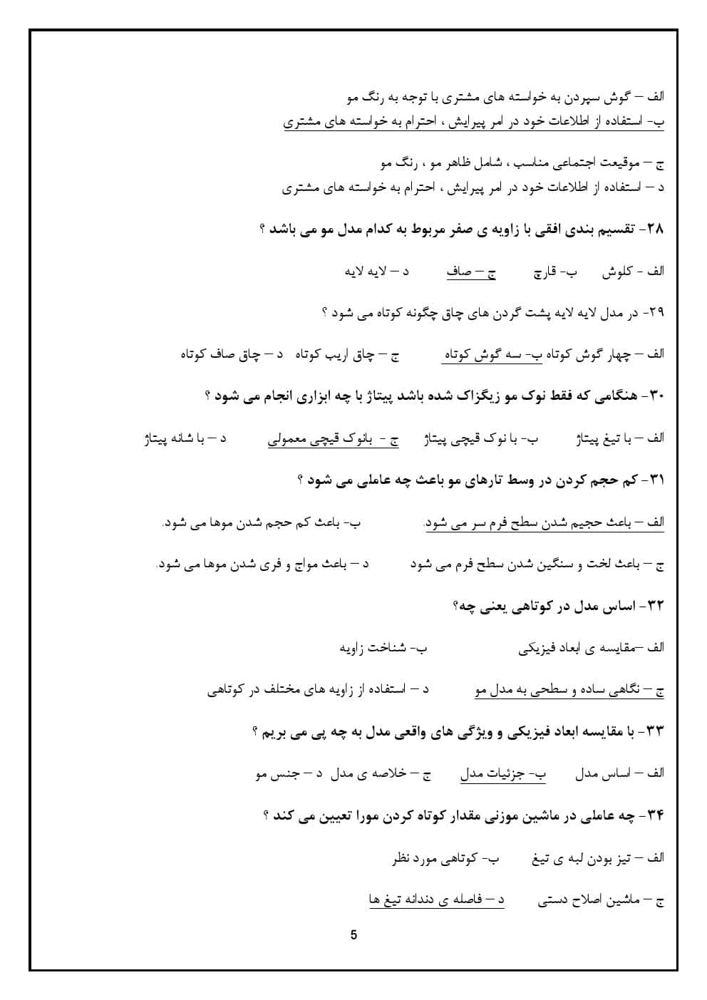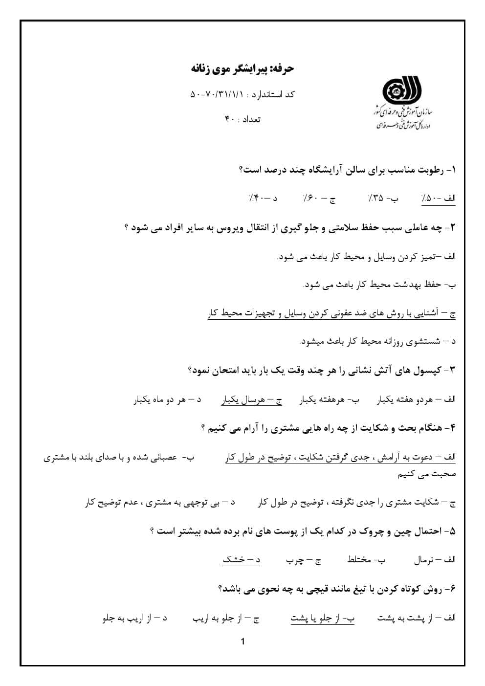 (کاملترین بسته سوالات آزمون پیرایشگر موی زنانه در کشور)