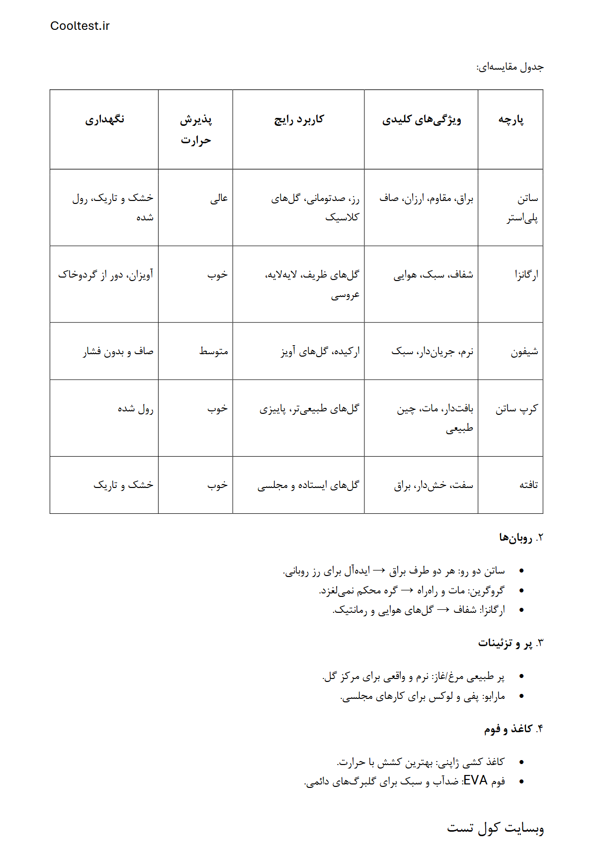 سوالات مواد اولیه مانند پارچه، سیم، پر، روبان، فوم و کاغذ