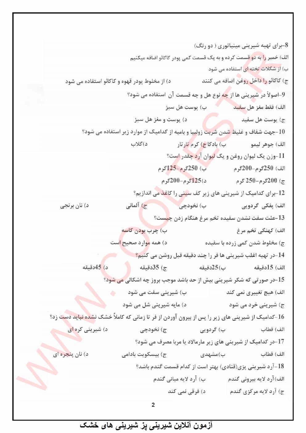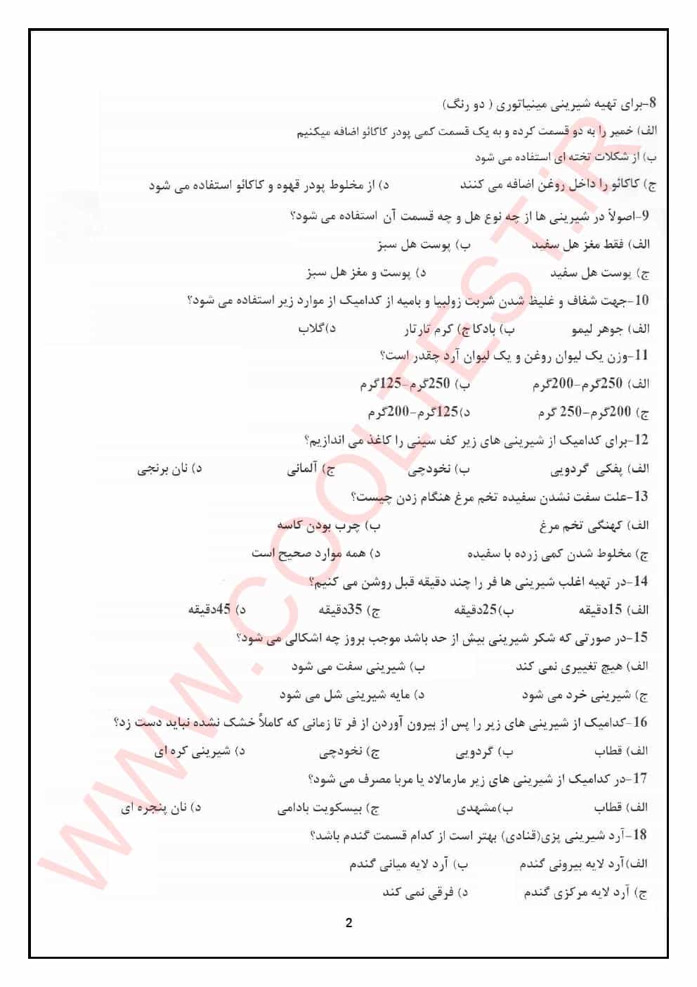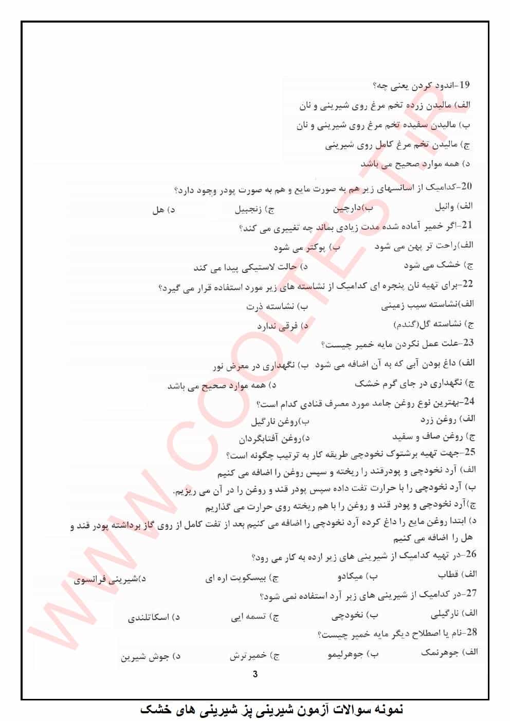 سوال های آزمون شیرینی‌ پزی شیرینی‌ های خشک مقدماتی و پیشرفته فنی حرفه‌ ای