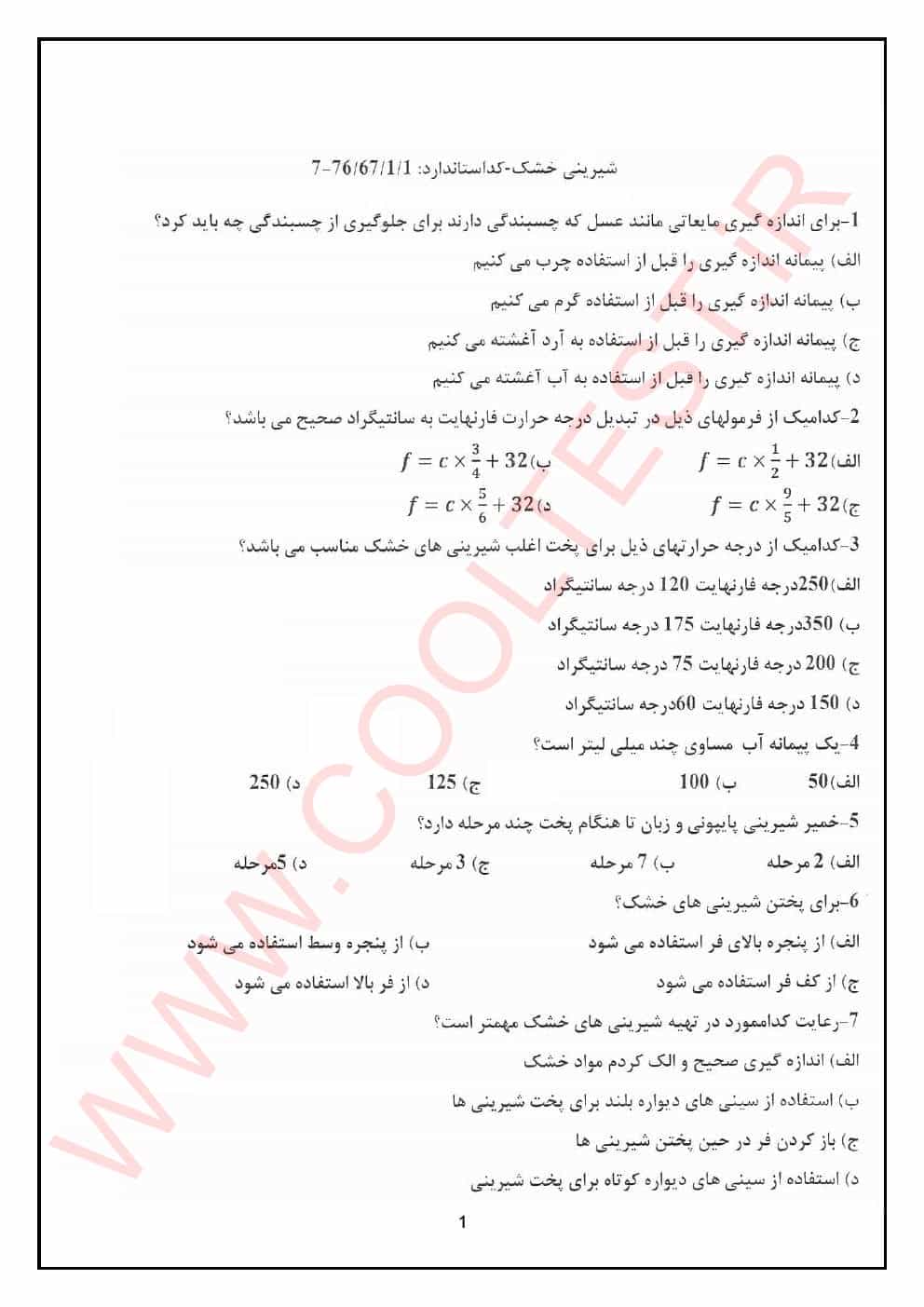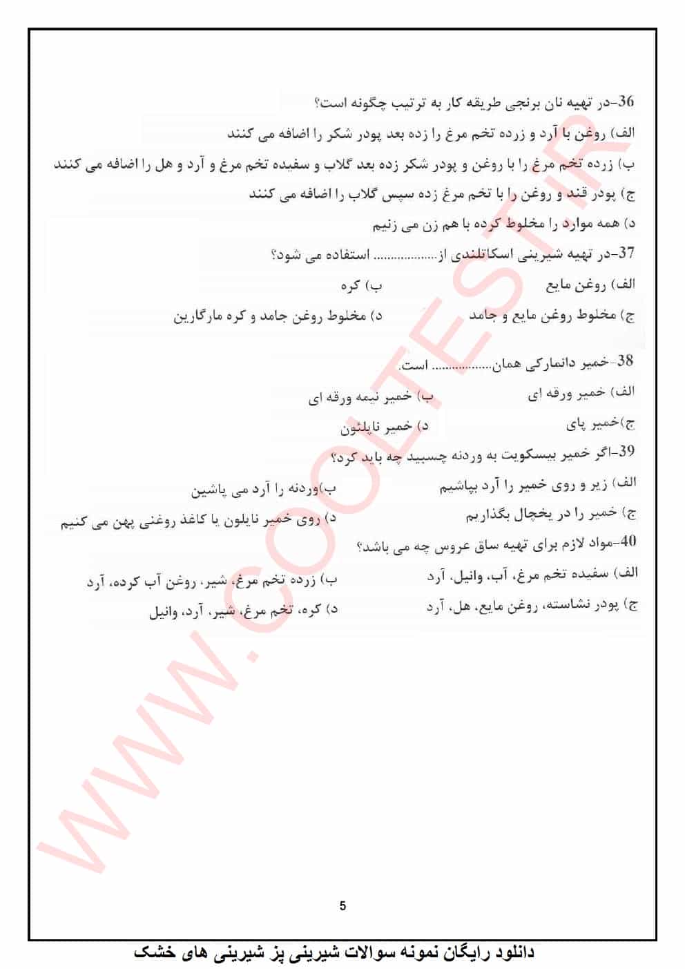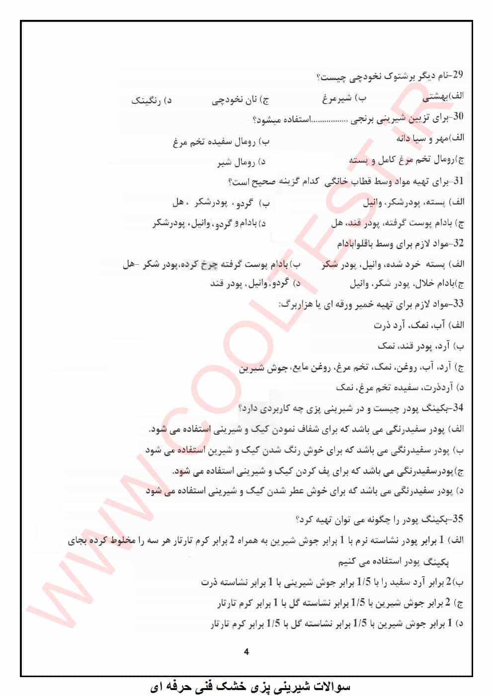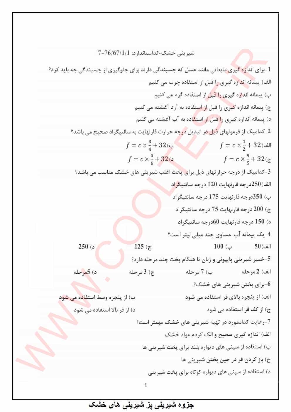 سوال های آزمون شیرینی‌ پزی شیرینی‌ های خشک مقدماتی و پیشرفته فنی حرفه‌ ای
