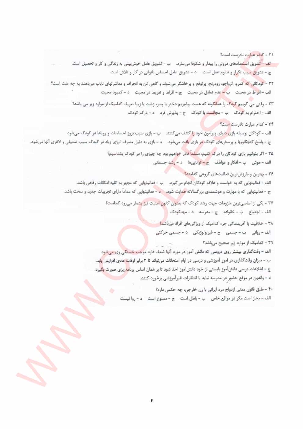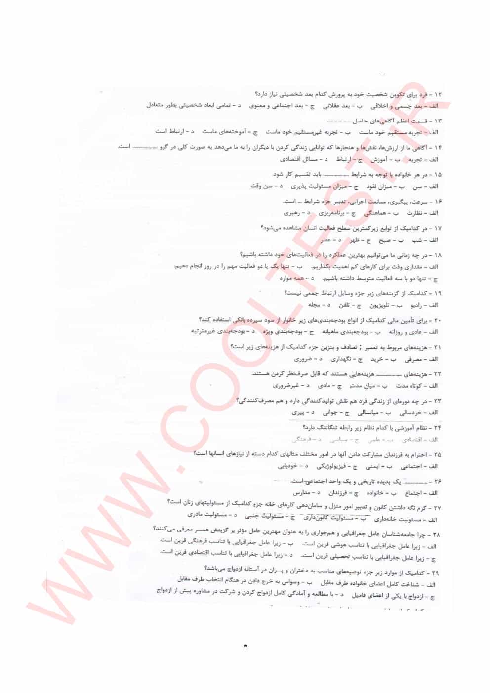 این بخش شامل سوالات مرتبط با مباحث تخصصی مدیریت و برنامه ریزی امور خانواده است که شامل: