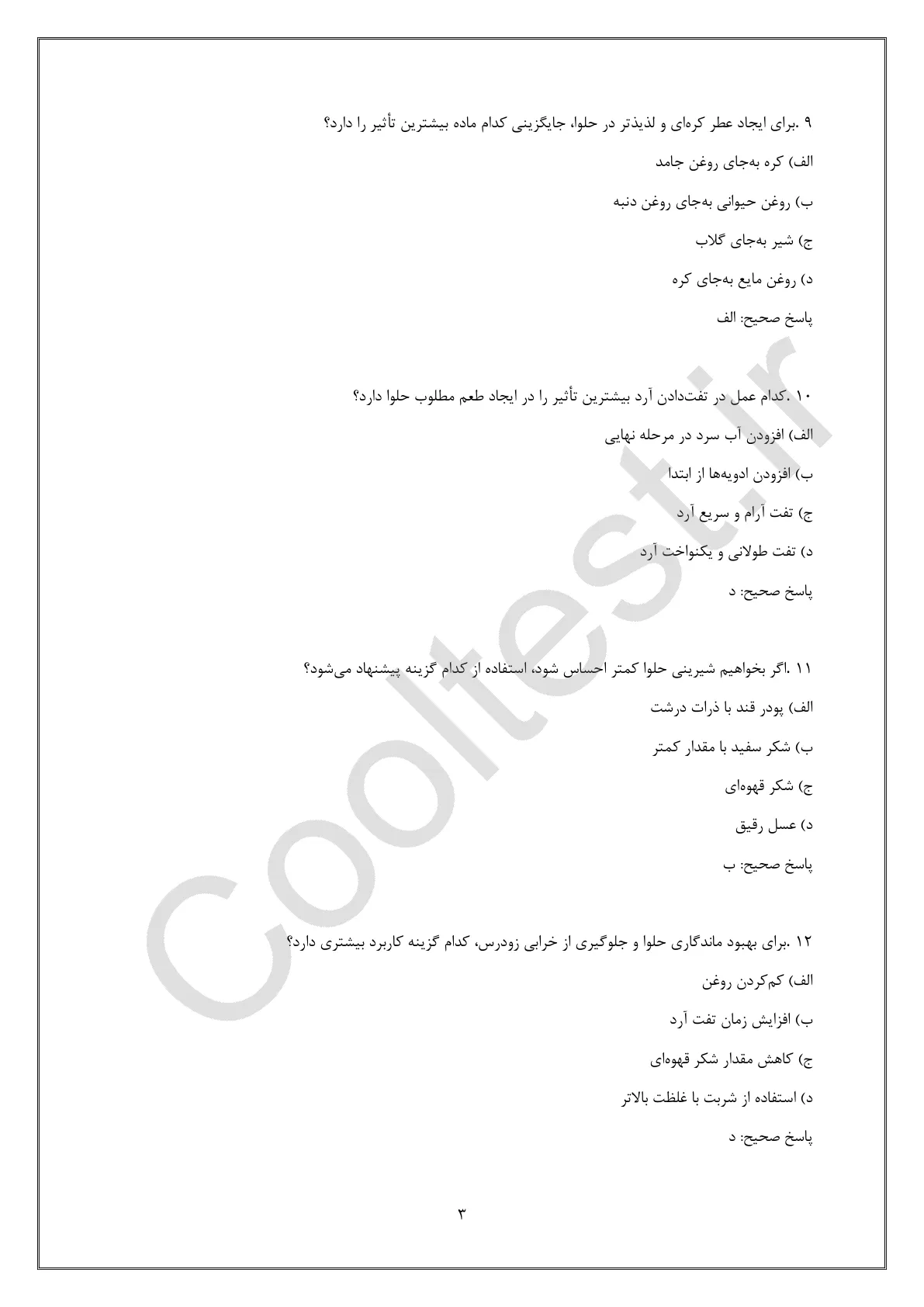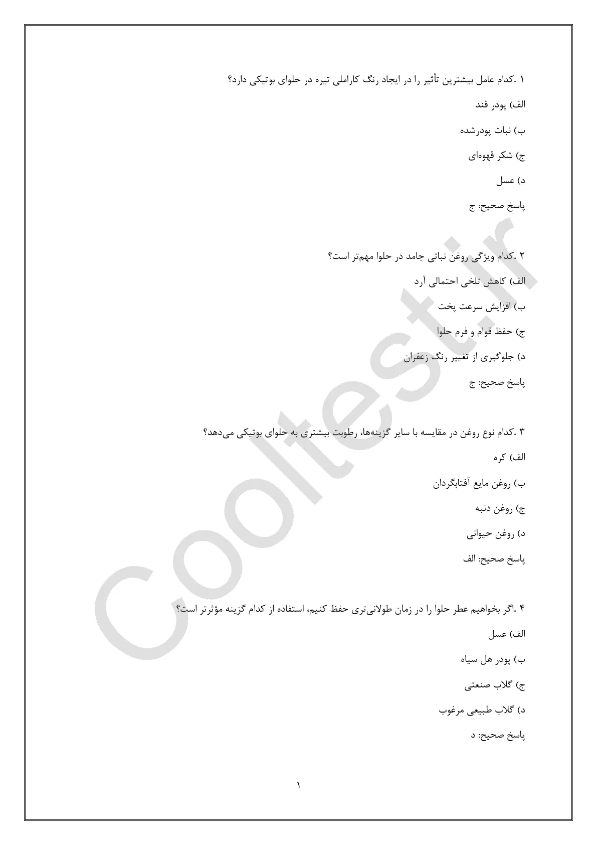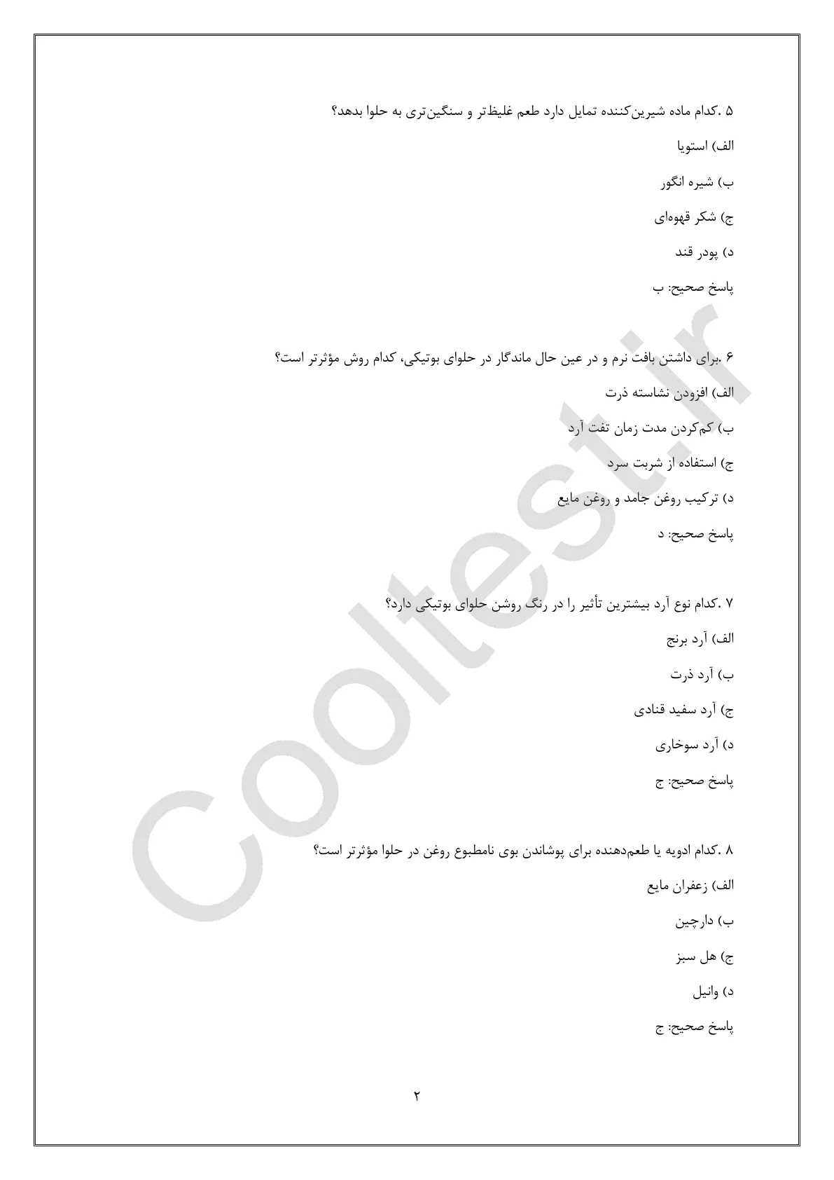 نمونه سوالات حلواهای بوتیکی فنی حرفه ای بصورت کامل و جامع از سایت کول تست